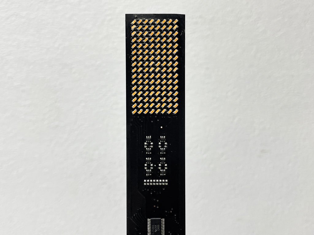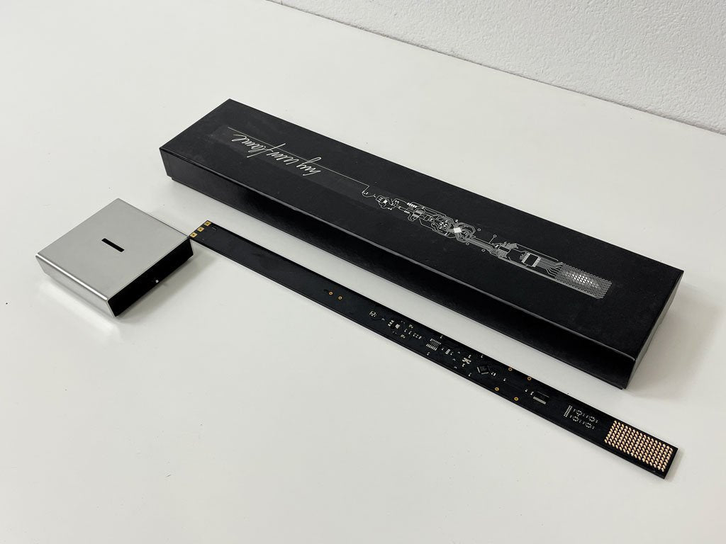 ストレートラインを基調に作られたモダンなフレームには先端に128個のLEDが組み込まれ、本物のキャンドルの如くゆらゆらと揺れ動く炎を表現。無機質で人工的な表情と複雑な先端技術を用い、古来より人類が目にしてきたシンプル且つ根源的な要素をモチーフとした独特の世界観を楽しむ事が出来ます。