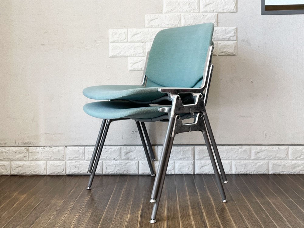 カステリ CASTELLI スタッキングチェア DSC 106 ダイニングチェア ミーティングチェア ファブリック グリーン系 ジャンカルロ・ピレッティ イタリア ビンテージ B ◎