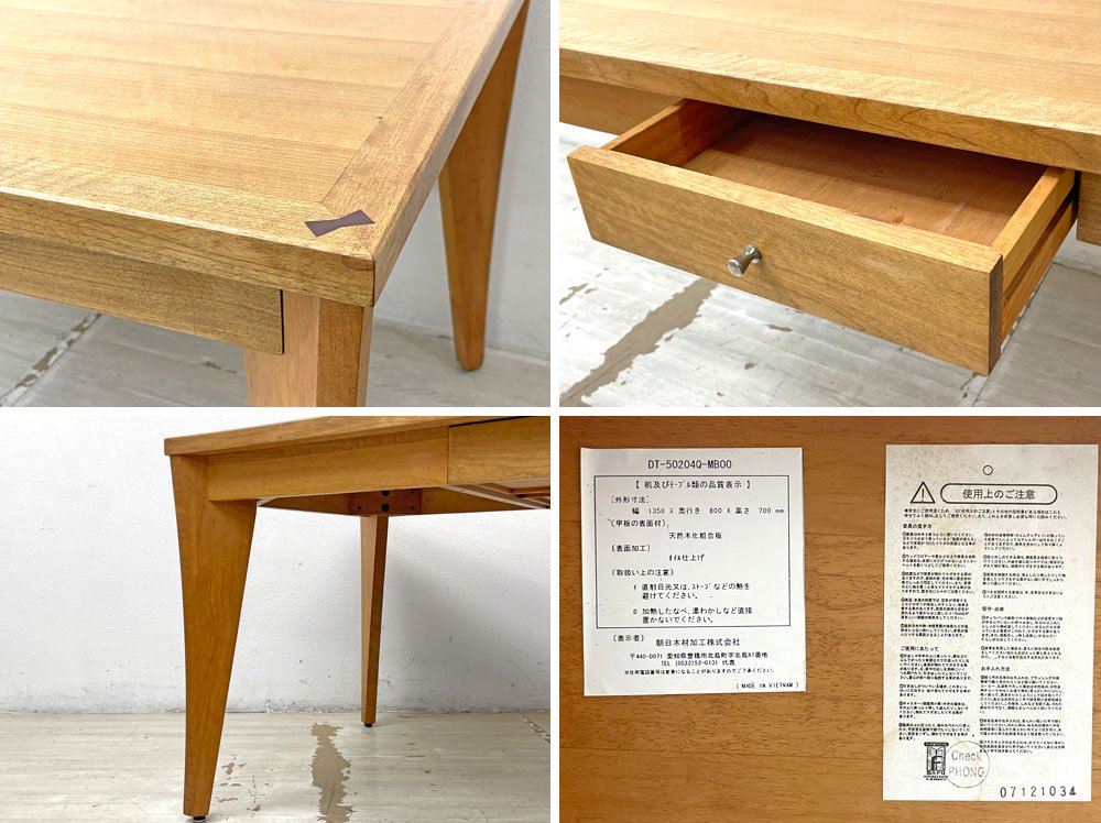 朝日木材加工 ボスコ BOSCO ダイニングテーブル ニヤトー無垢材 ちぎり 抽斗2杯 W135cm オイル仕上げ クラフト家具 ●