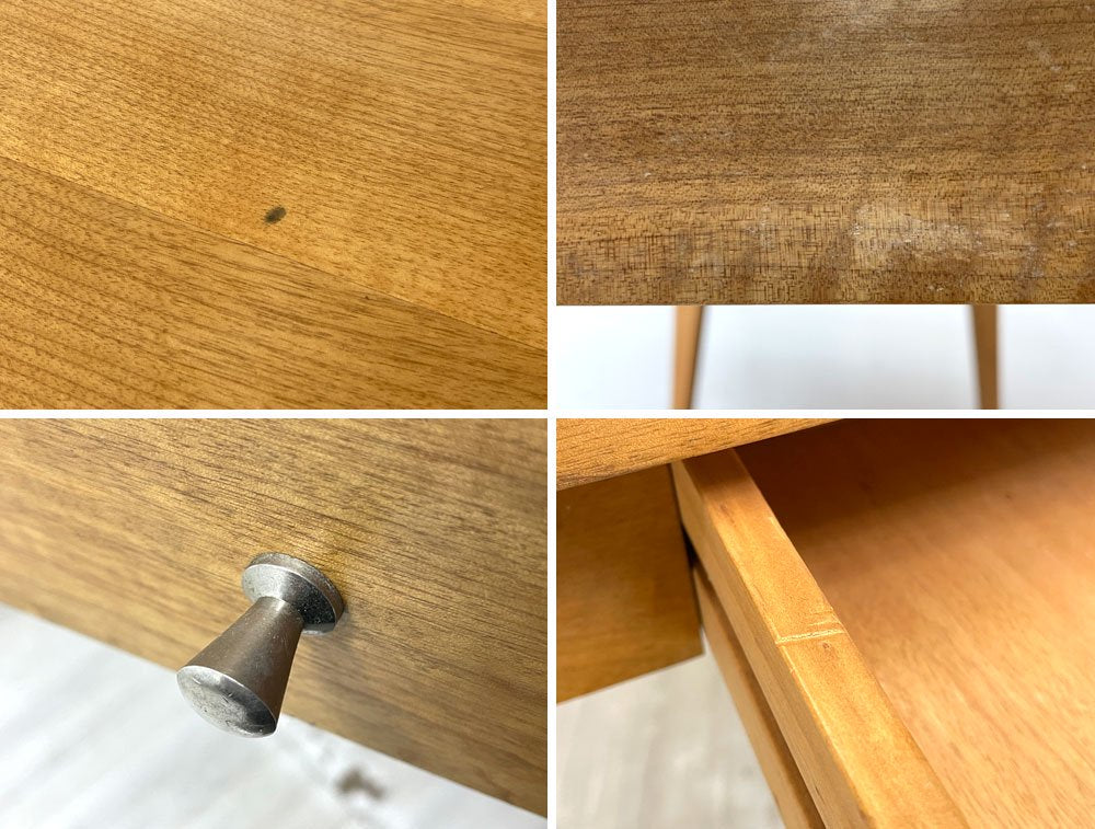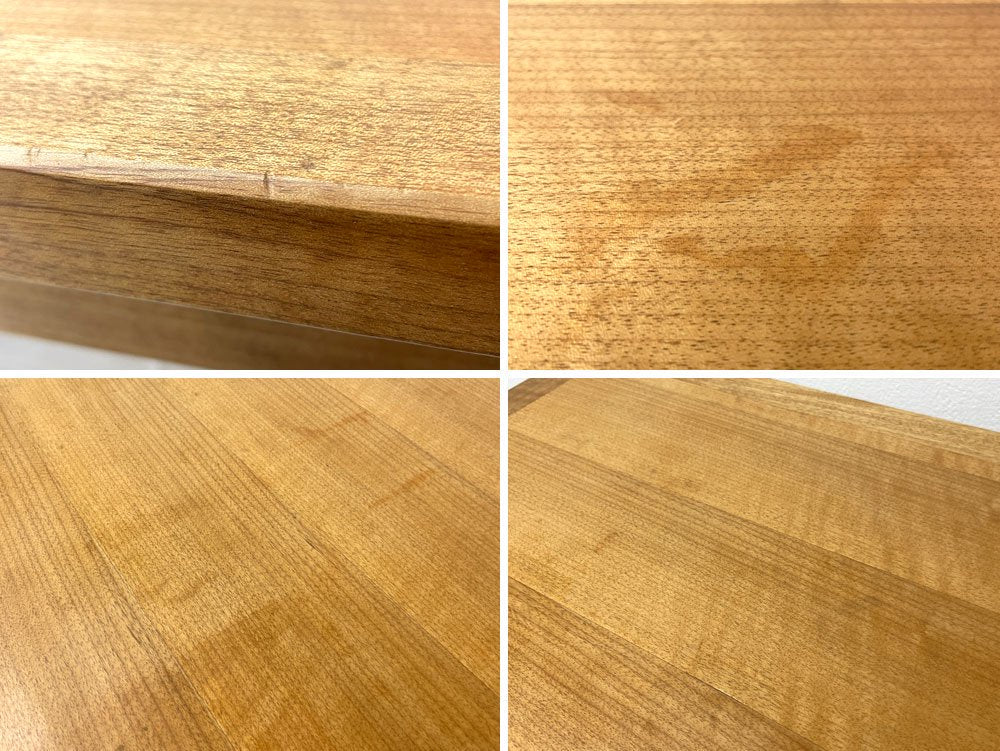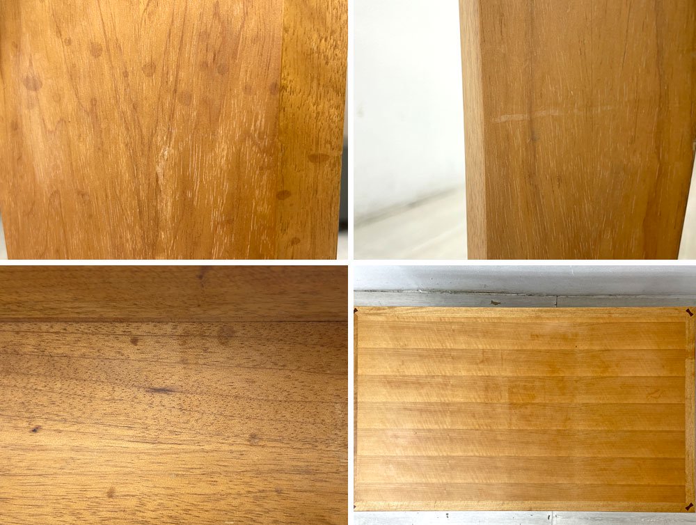 使用に伴う擦れや傷、軽微な打痕、欠けがございます。また、天板には、僅かに色ヤケや取り切れない染み・汚れが見受けられます。割れやガタツキ等の大きなダメージは無く、これからもまだまだ実用いただけるコンディションを保っております。