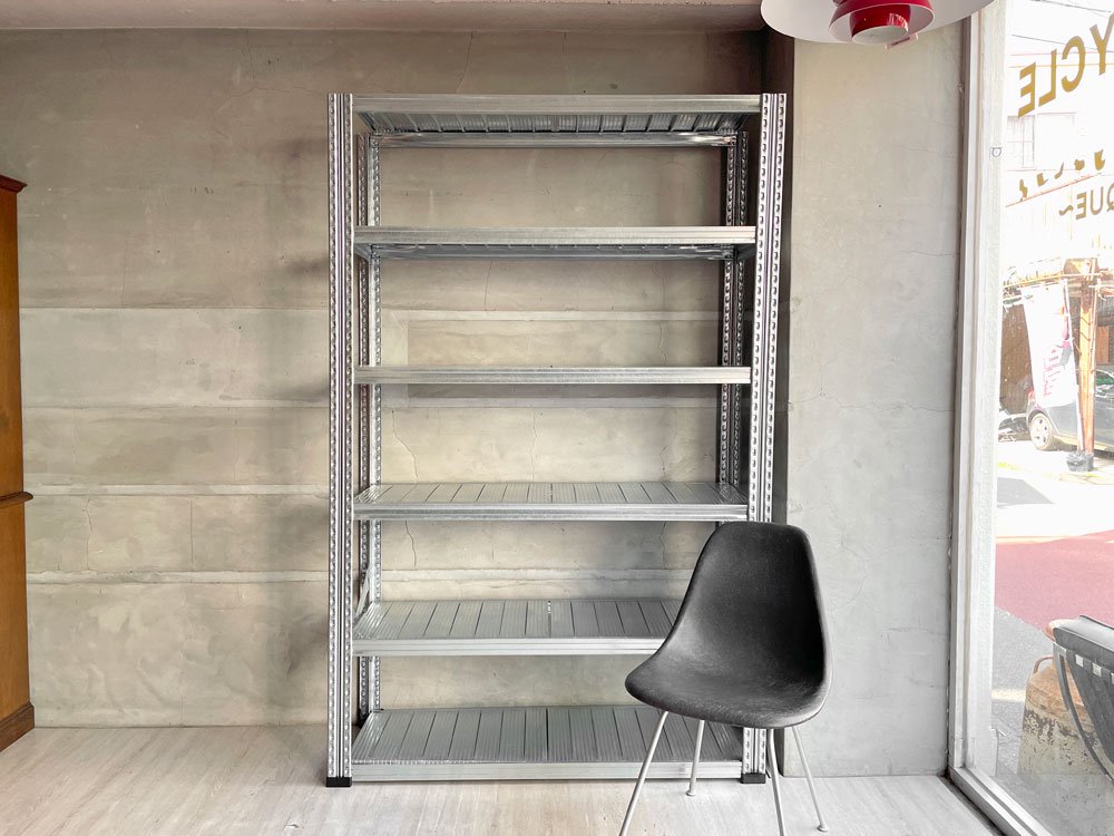 鈍く光るスチールが無骨な雰囲気を演出し、ショップや倉庫設備のみならず一般家庭にも人気を博しています。