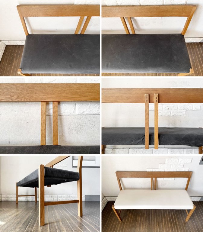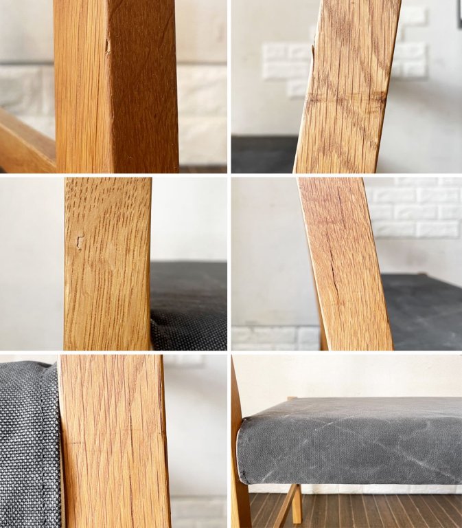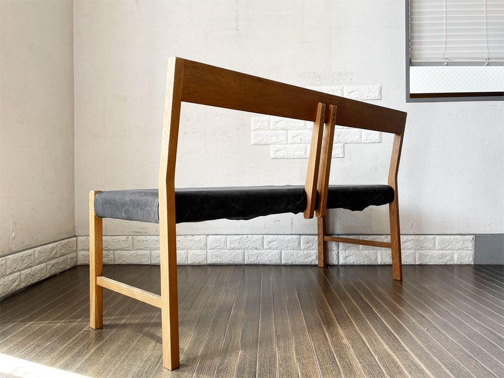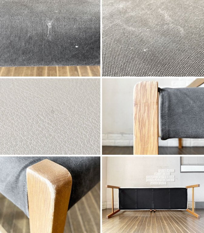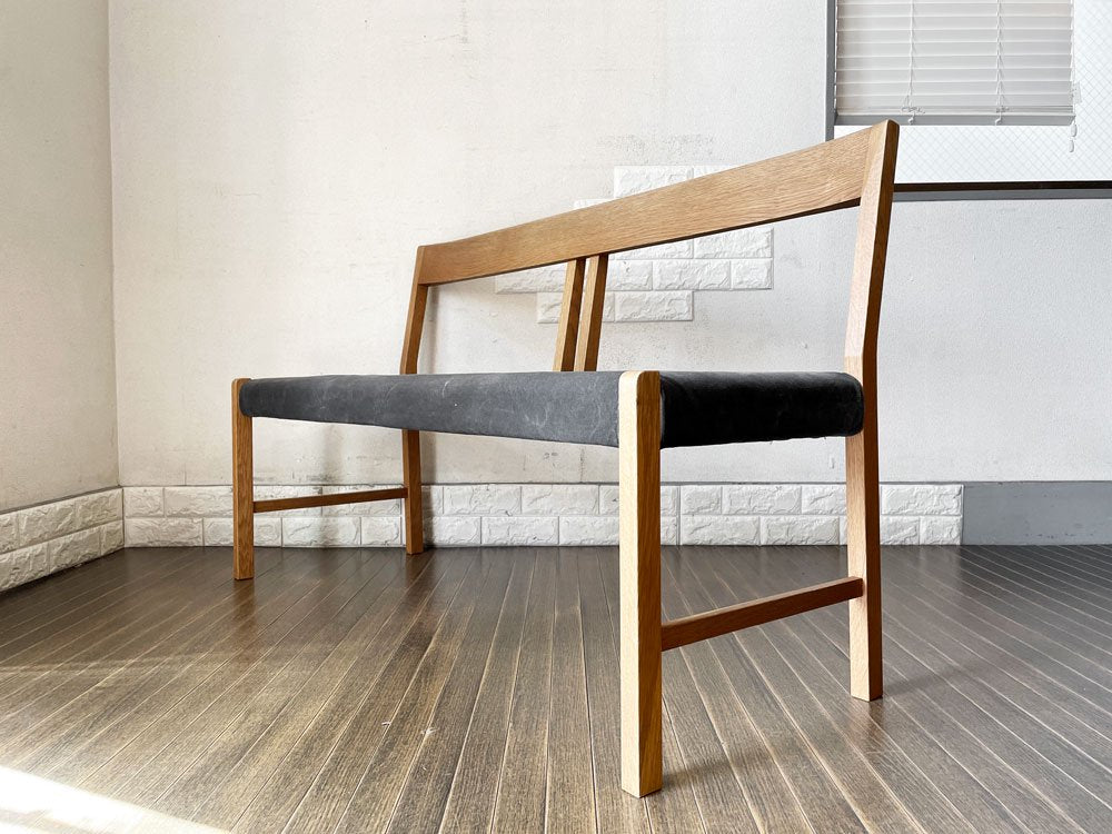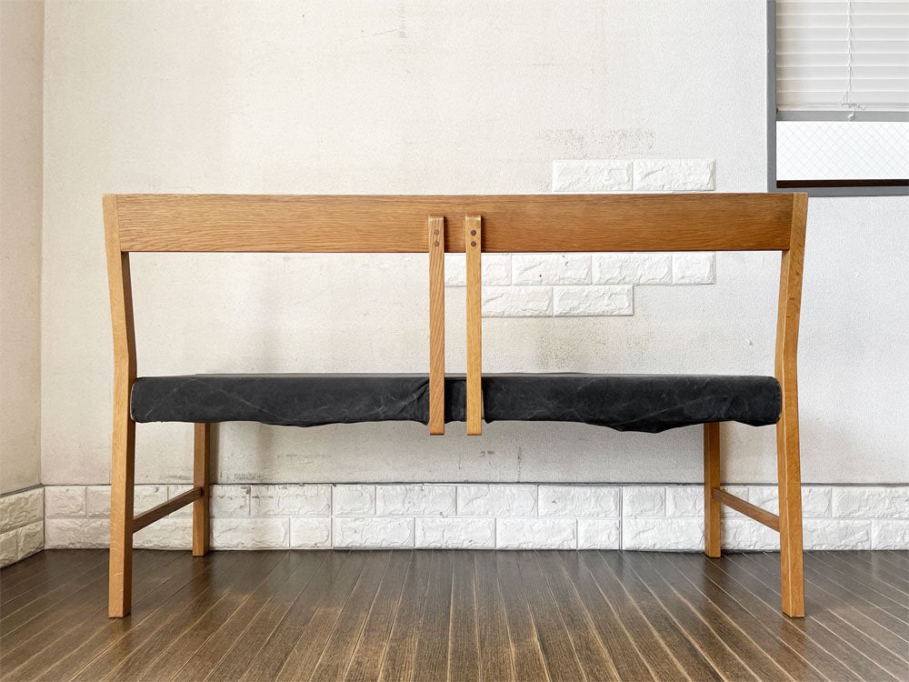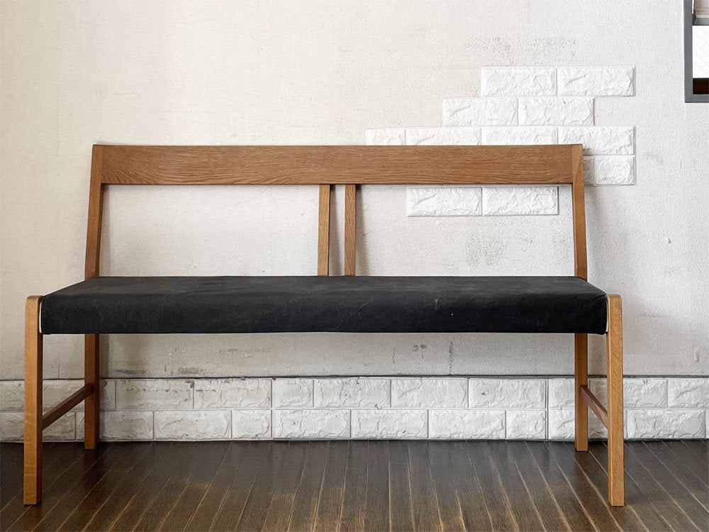 広松木工 HIROMATSU フレックス FREX セティ 126 背付きベンチ オーク材 W126cm カバーリング 帆布 ダークグレー 定価¥113,300- ◎