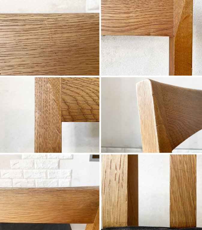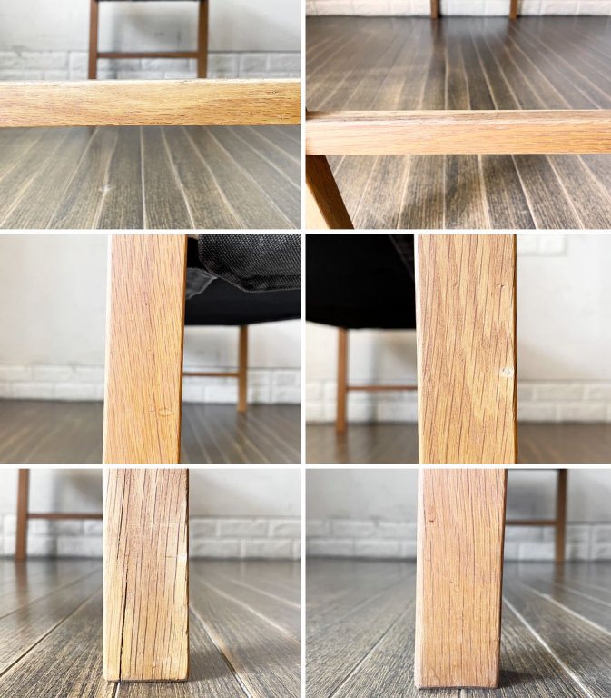 フレームには、擦れや傷、打痕、縁の削れや僅かな割れによるささくれ、ペン痕や黒ずみ、水染みなどの取り切れない汚れ等が散見されます。また、一部木色の色落ちや、杢目のひび割れが確認できます。その他、カバーやヌードには落としきれないシミ汚れがございますが、がたつきやぐらつきといったご使用に問題となるダメージはございません。これからもまだまだ実用いただけるコンディションを保っております。