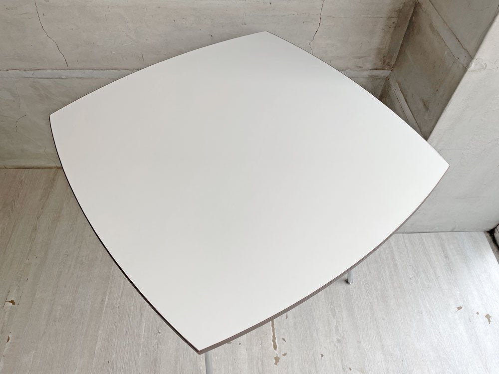 曲線を描く天板とスチール脚の組み合わせられた、ミッドセンチュリー家具とも相性の良さそうなデザインのテーブルです。