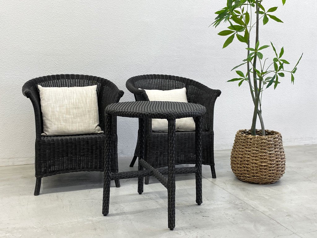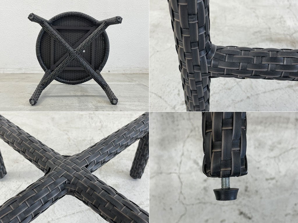 アルミフレームに職人がコードを巻き、クッションやシート以外はメンテナンスフリーでデッキやテラスなどの屋外におけるサイドテーブルです。
