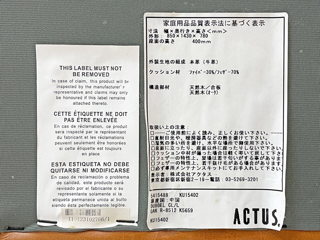 アクタス ACTUS ファイブ・バイ・ファイブ five by five デュベル DUBBEL シェーズロング 本革 オーク無垢材 定価¥184,800- ●