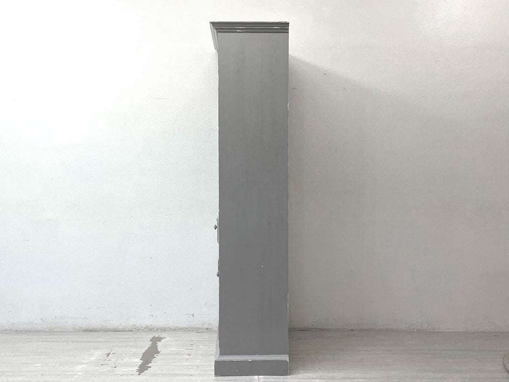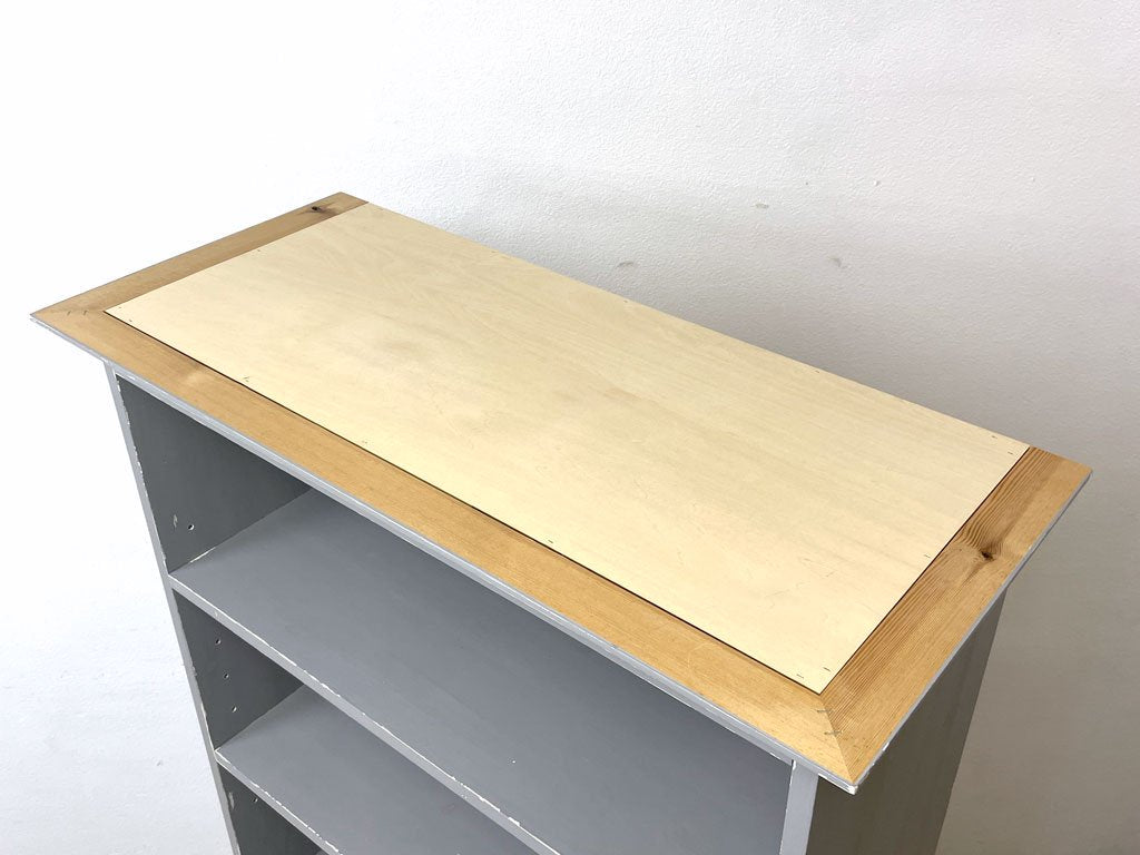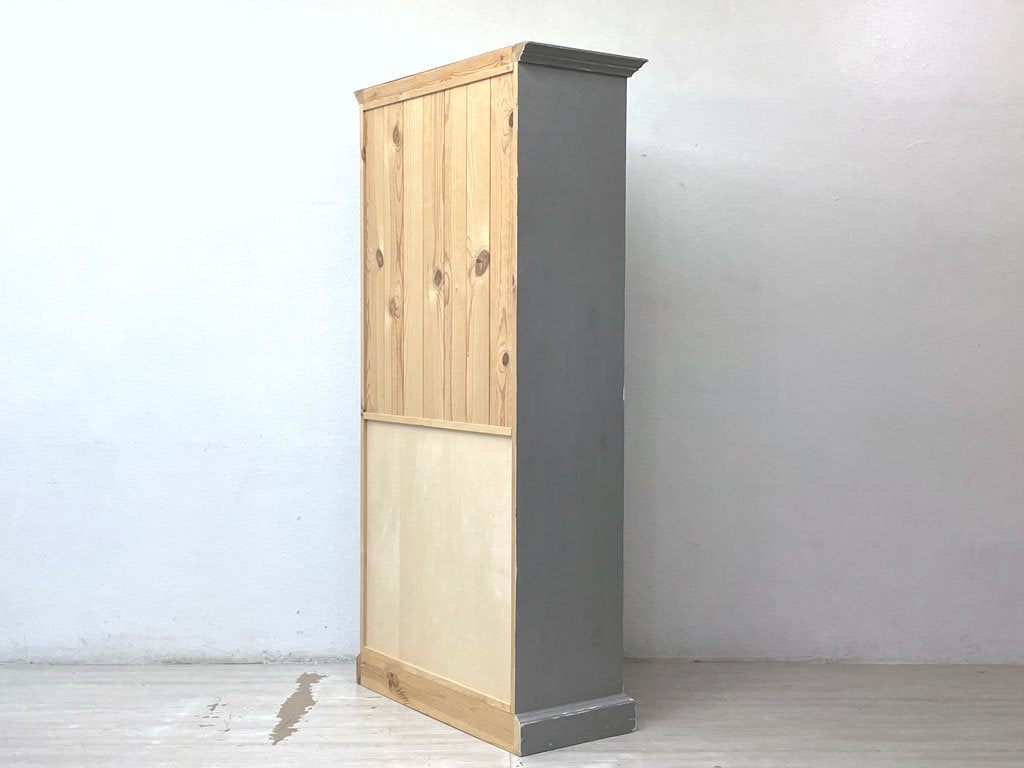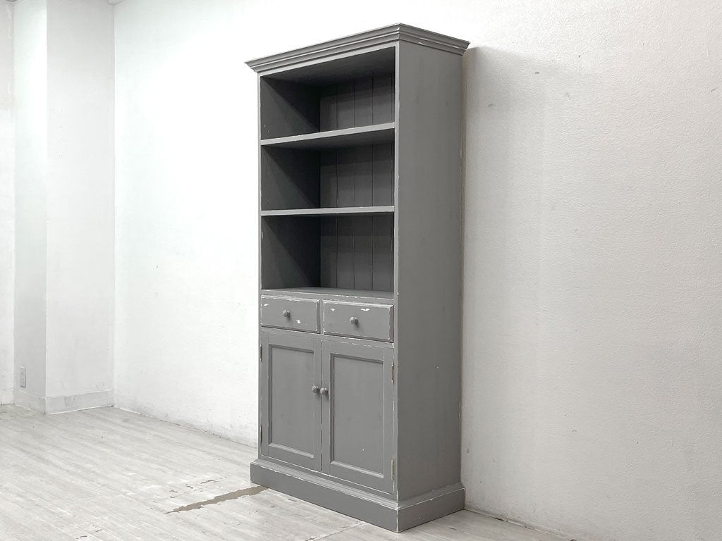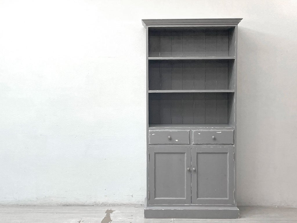 ペニーワイズ THE PENNY WISE オーダーペイント パイン材 ブックシェルフ キャビネット 本棚 飾り棚 食器棚 ブルーグレー色 エイジング加工 シャビーシック ●