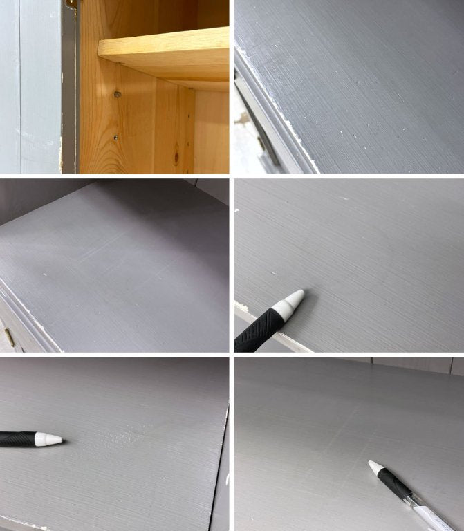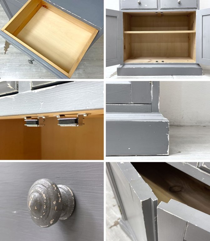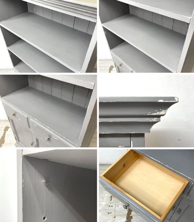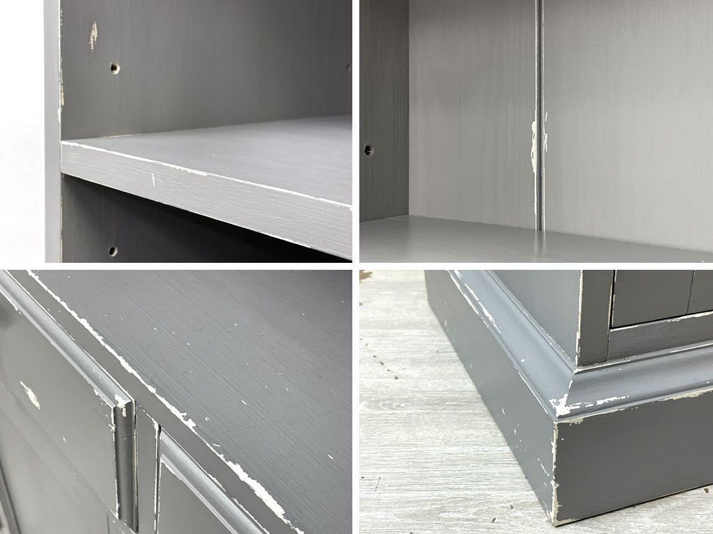 こちらは先述の通り、オーダーによってペイント及びエイジング加工を施したお品物となります。棚板にはわずかに擦れや打痕、棚板には木の油分由来の染みやヤケ等は見られるもののいずれも風合いを損なうものではございません。各所の動作もスムーズで、今後とも気持ち良くお使い頂けるUSED品として概ね良好なコンディションを保っております。