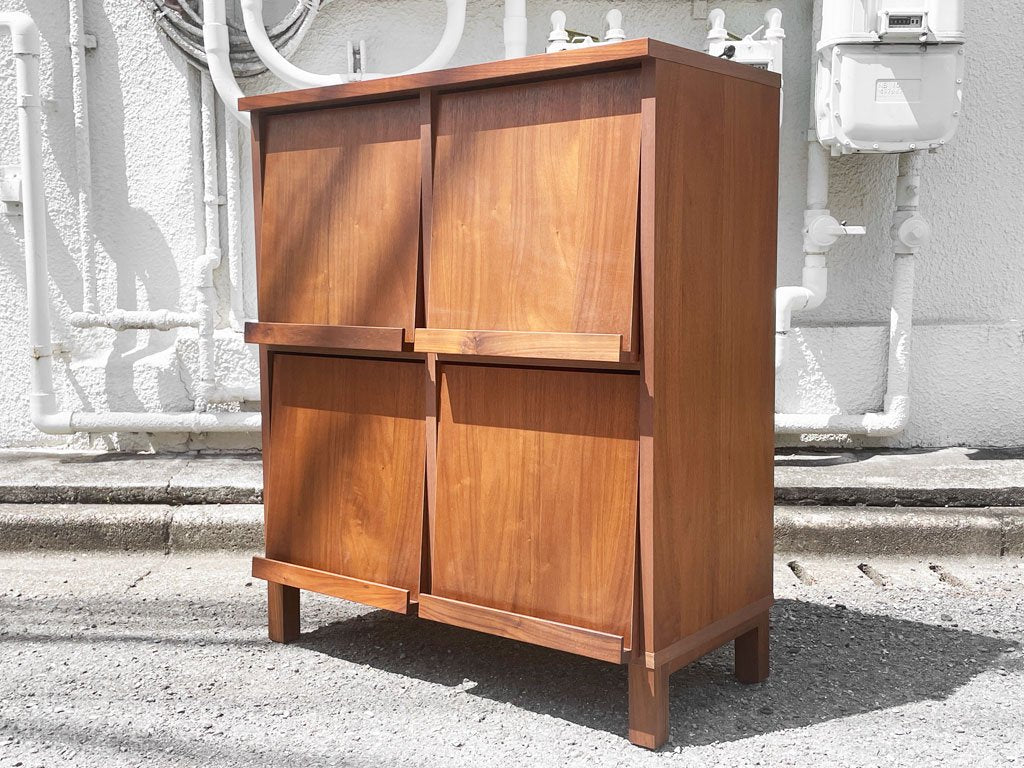 高野木工 レッチェ LECCE マガジンラック ブックシェルフ ウォールナット材 フラップアップドア シンプル W77cm 定価99,000円 ◇