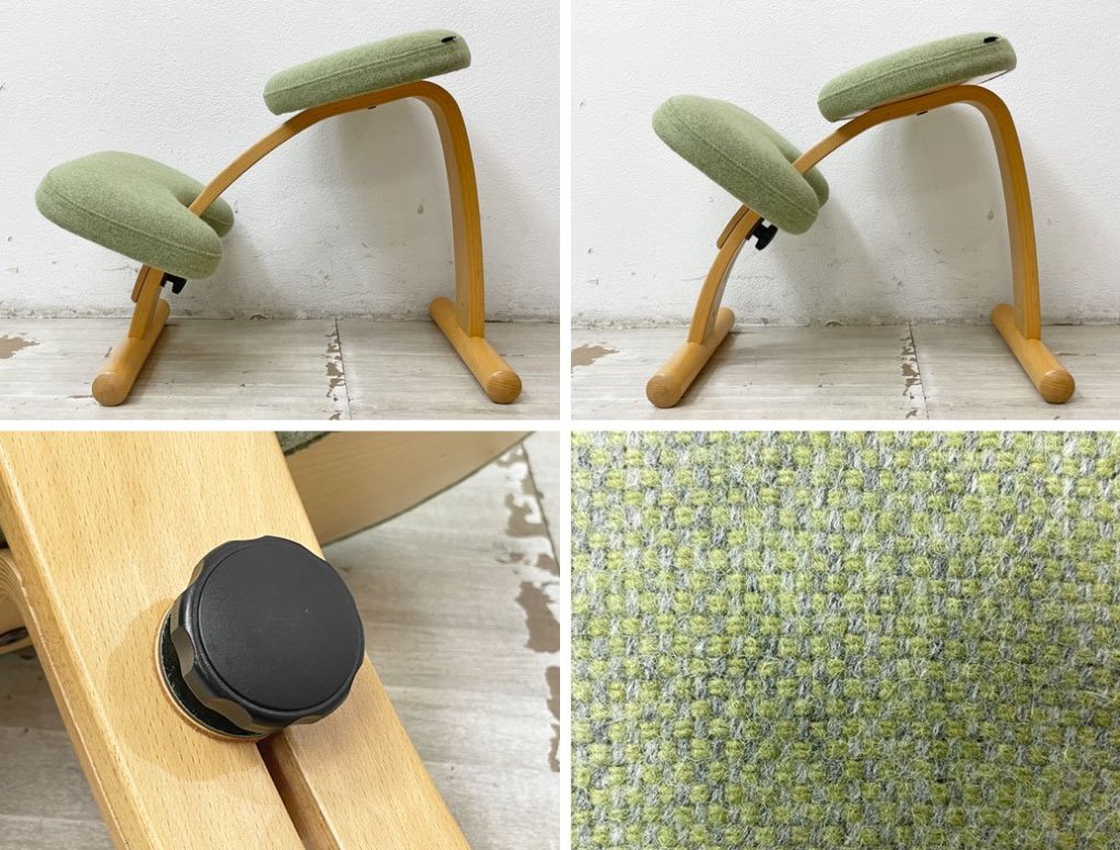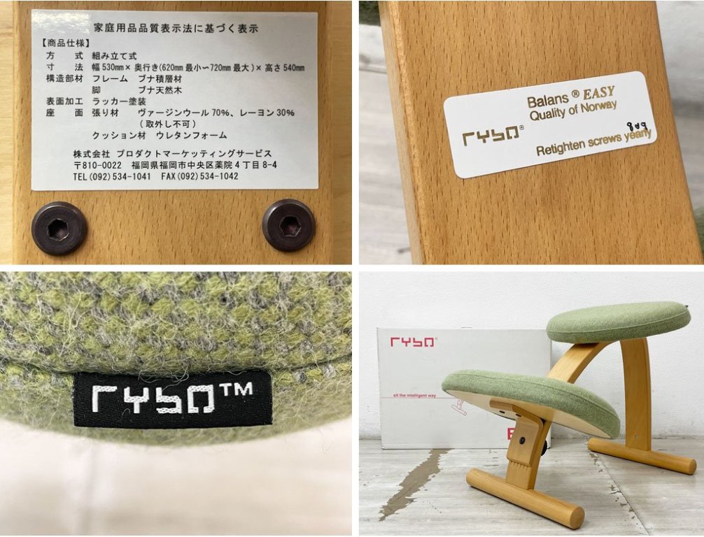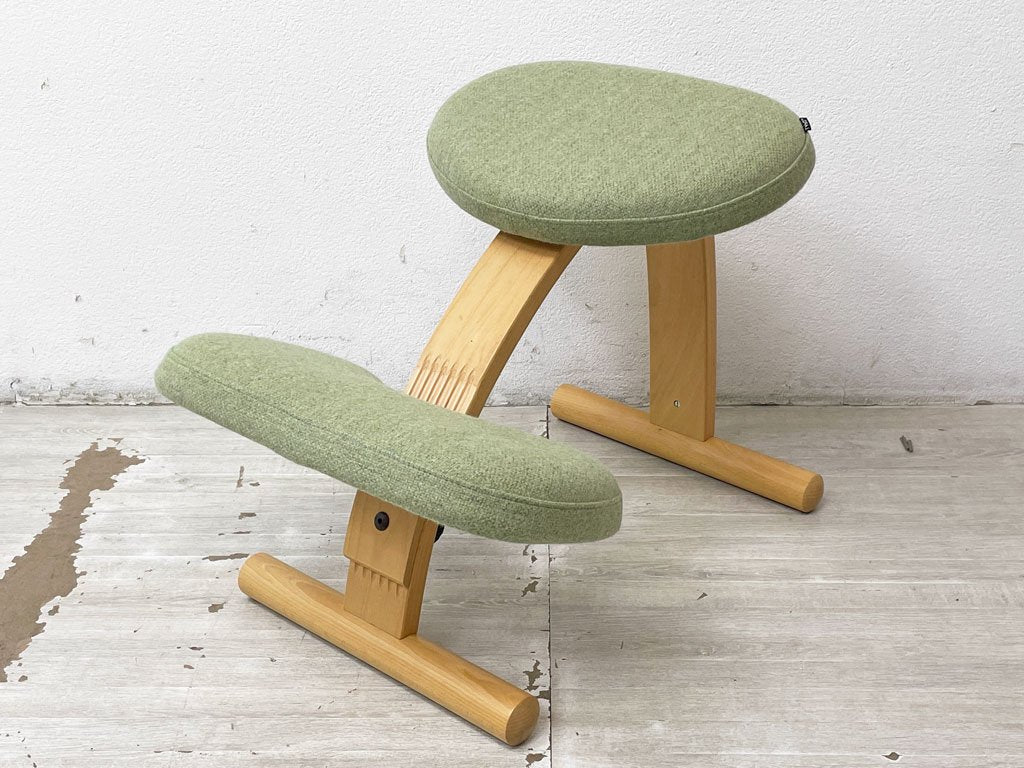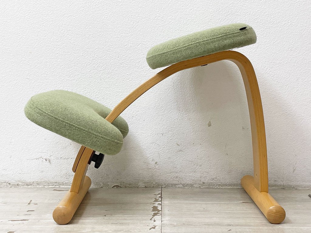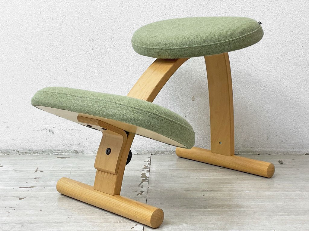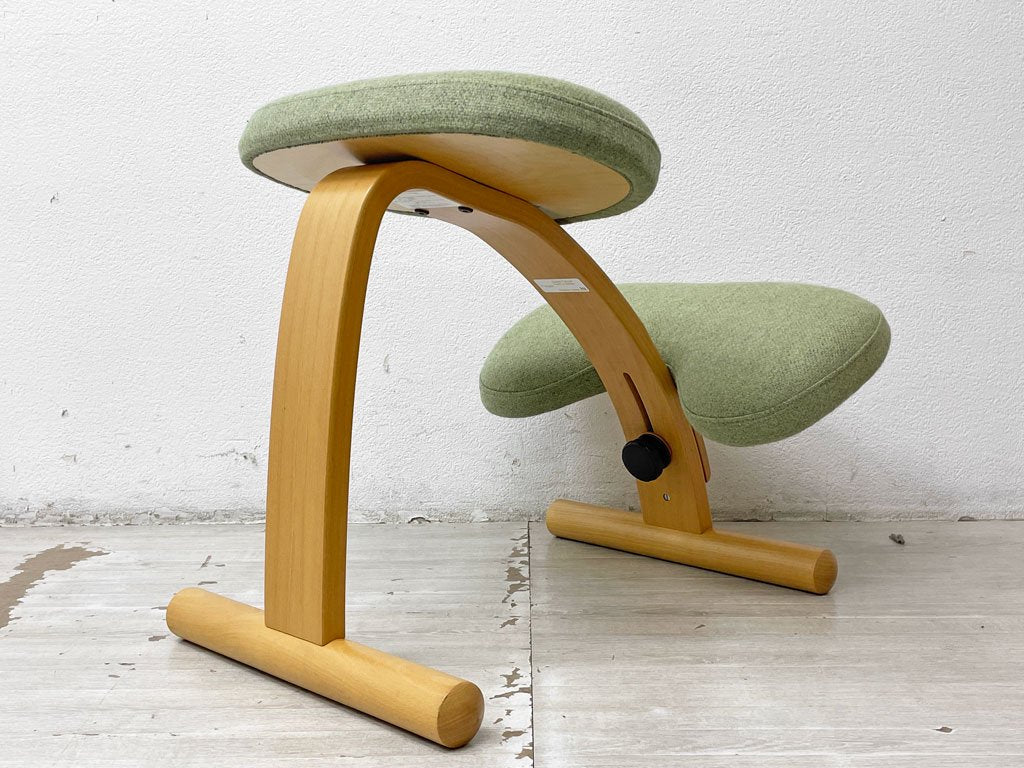 リボ Rybo バランスイージー Balans EASY デスクチェア バランスチェア 学習椅子 姿勢矯正 グリーン ブナ材 北欧 ノルウェー 箱付き 美品 ●