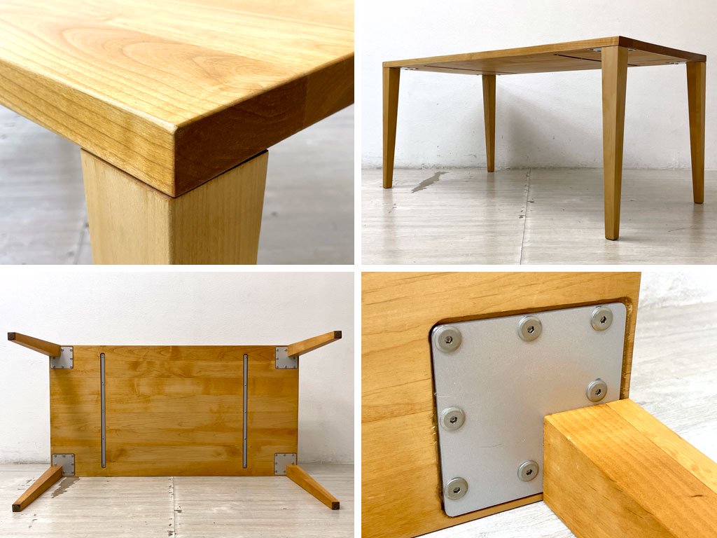 最小限のパーツのみで構成されたミニマルなデザインながら、脚と天板との接合は、天板裏に埋め込まれた金属プレートによってしっかりと固定されており、見た目以上に丈夫な造りの1台。