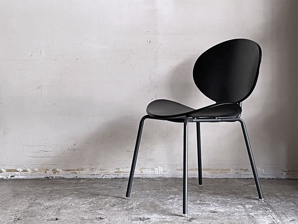曲木を活かした柔らかなフォルムを描く背もたれと座面で構成されながらも、スタイリッシュな脚部、フレームがデザインを引き締めており洗練された印象に。