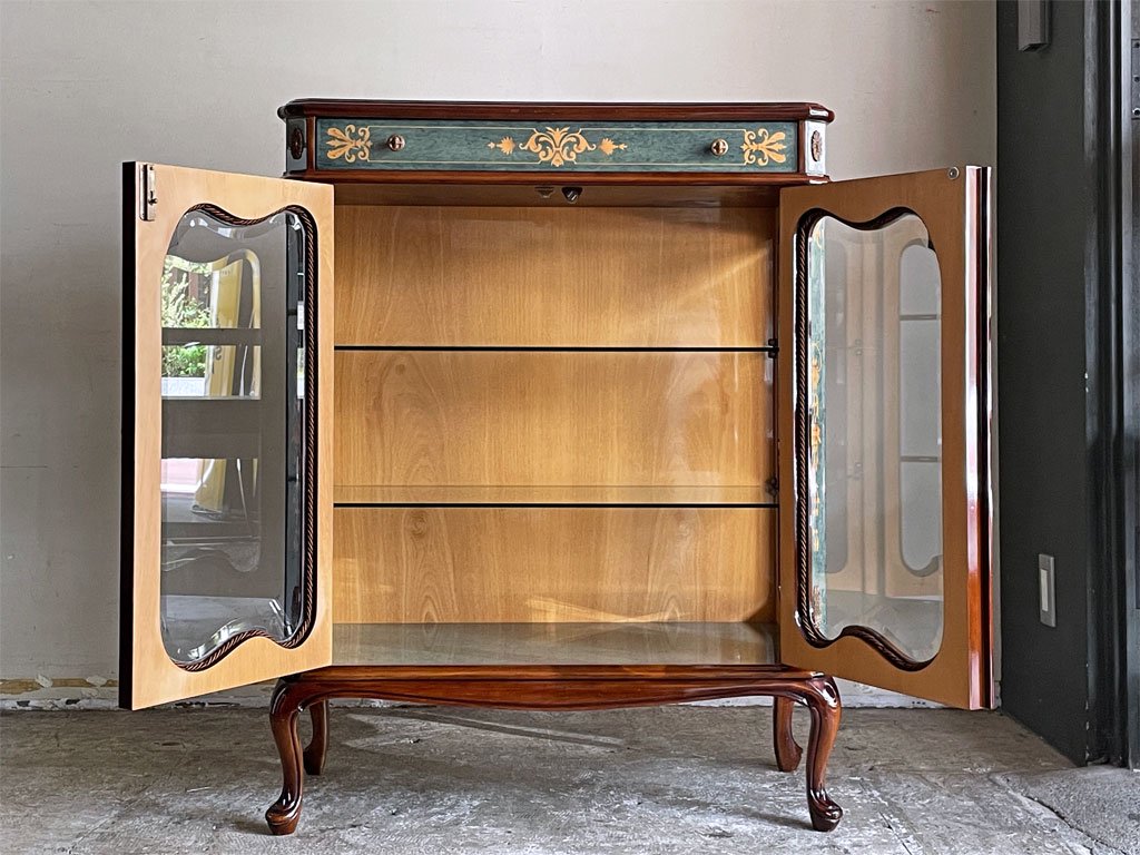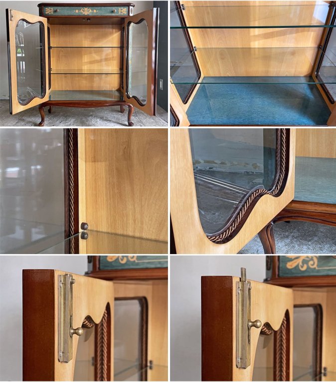 細部に至るまで丁寧に造りこまれた徹底した職人技術と、高い審美性が伺い知れるガラスキャビネットになります。