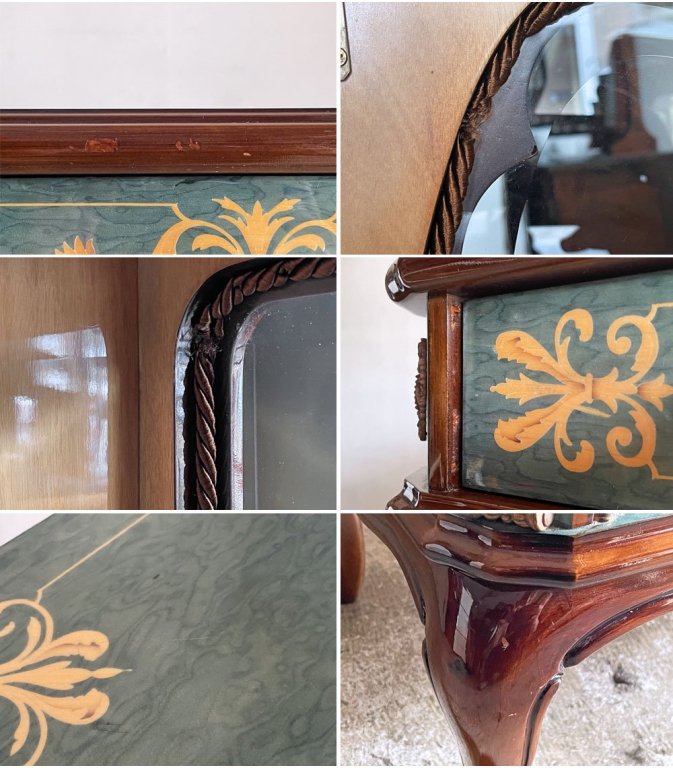 ガラスキャビネット 象嵌細工 バーズアイメープル キュリオケース