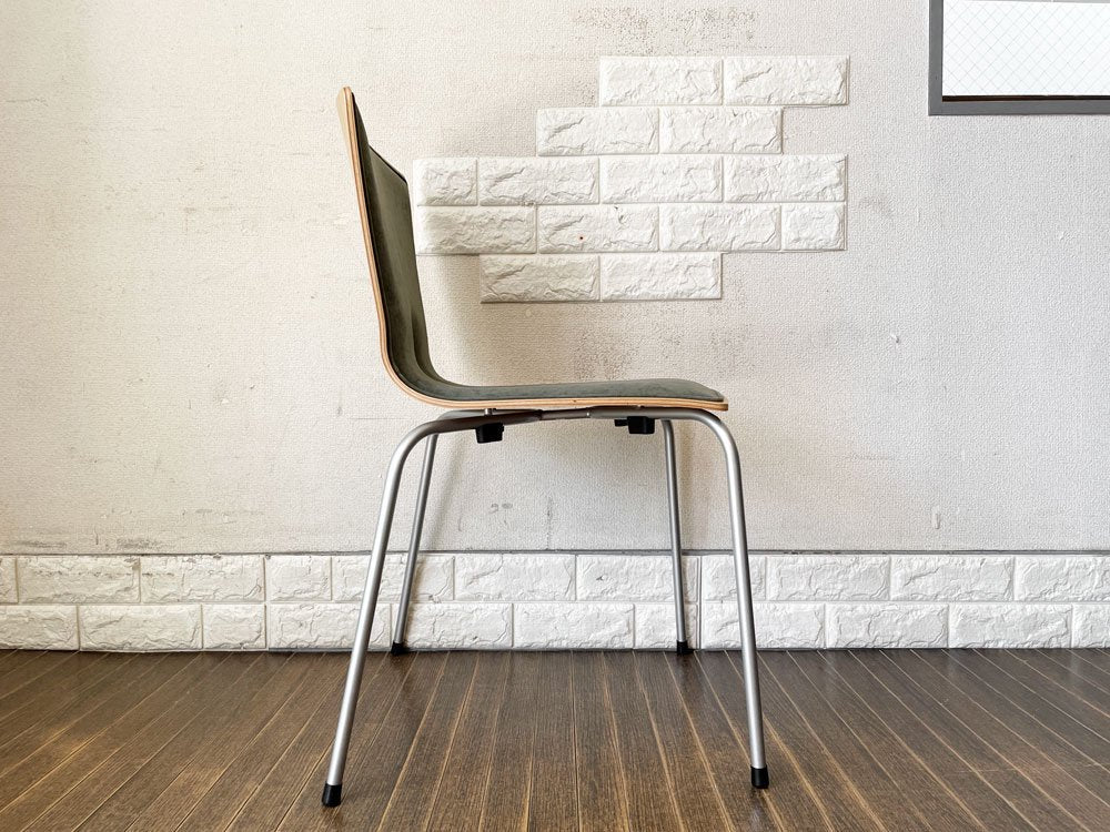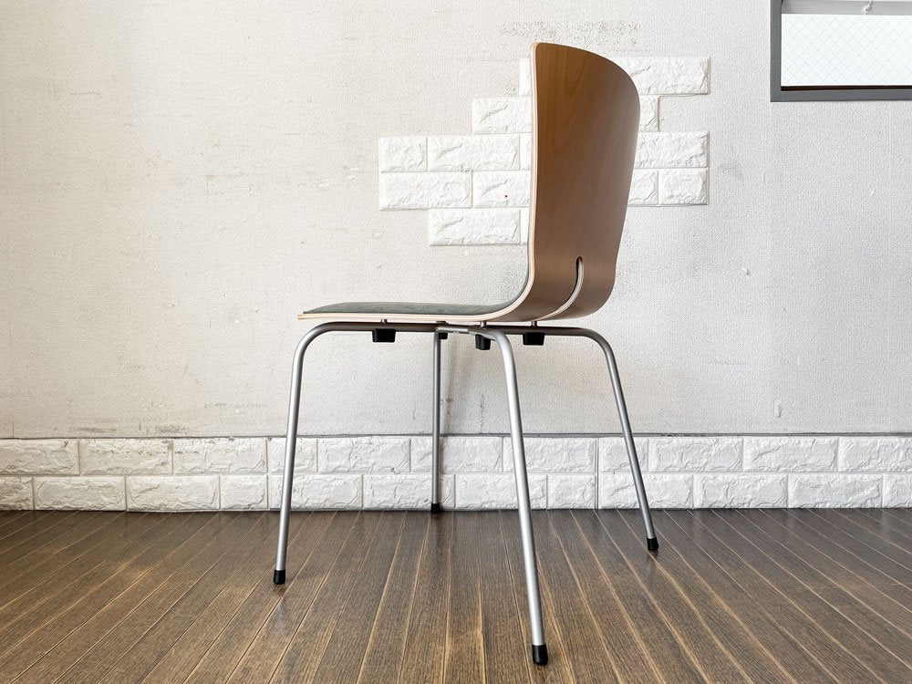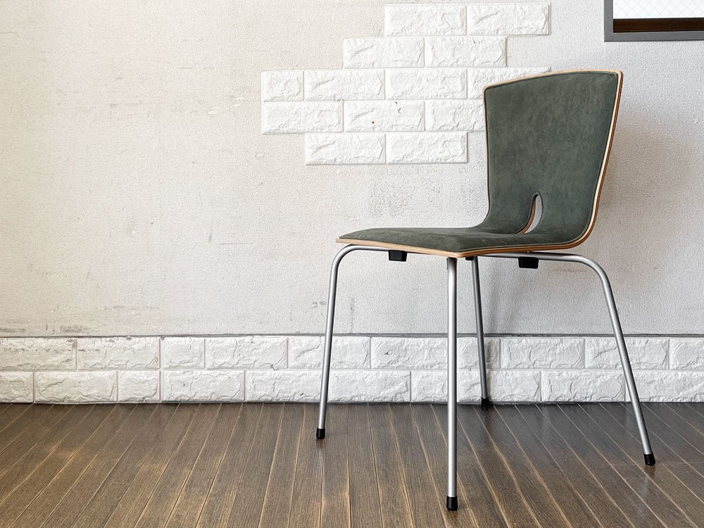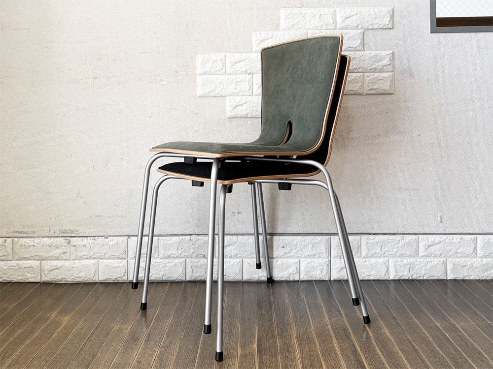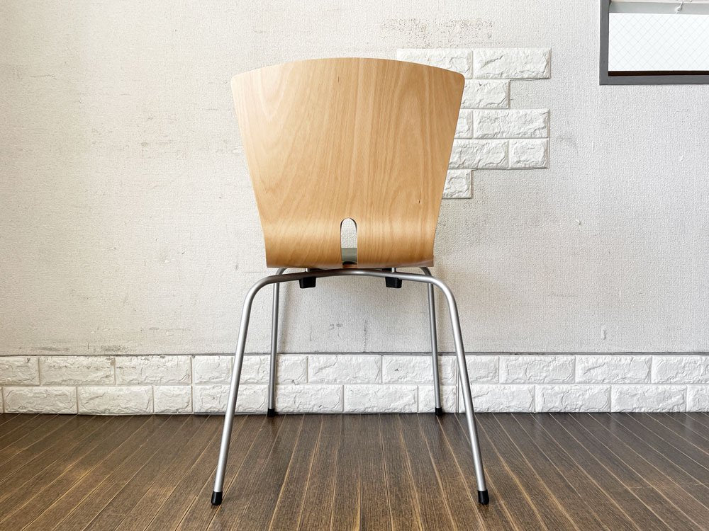 こちらは、プライウッドの背座にスチール脚を合わせたスタッキングチェア「リーブス | LEAVES」。スマートな佇まいが魅力のダイニングチェアです。