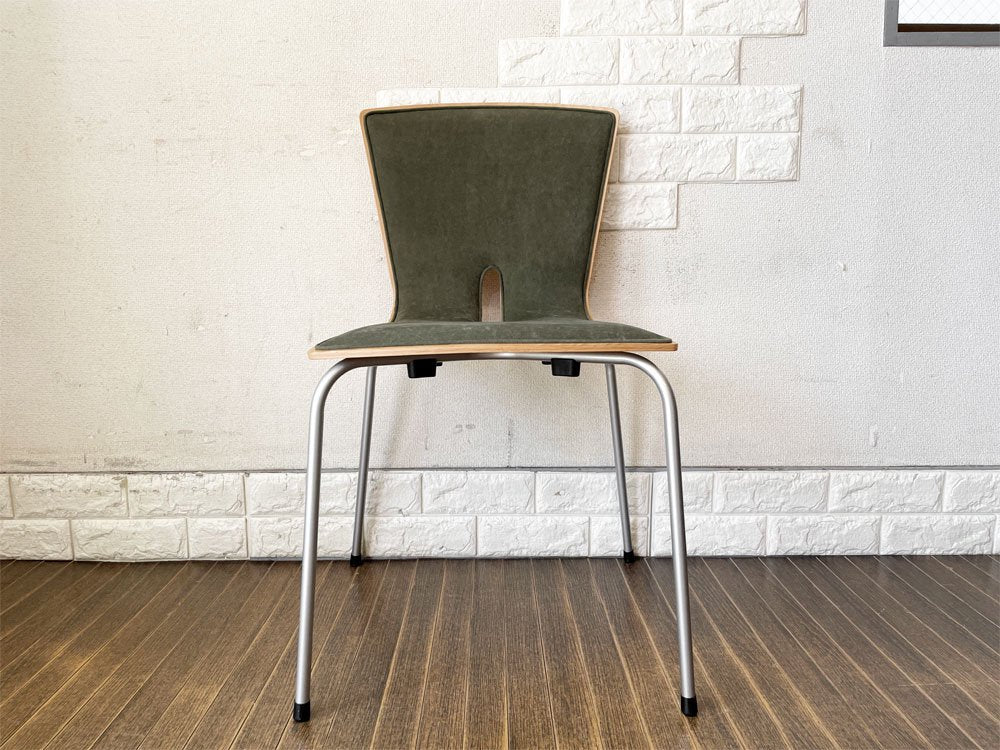 さまざまなカラーや仕様で展開される中から、今回はビーチ材の木肌にグリーン系のスエード生地がなじむパディング布張りモデル。