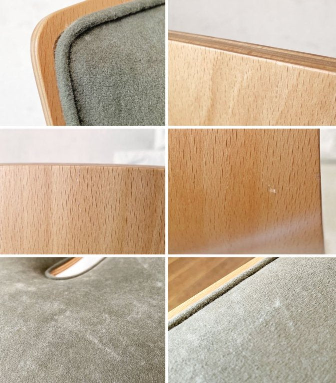 シェルやフレームに若干の擦れや小傷、ファブリックの毛羽立ちやスタッキング痕はございますが、いずれも著しく美観を損ねる大きなダメージではございません。比較的使用感の少ないコンディションで、これからも気持ちよく実用いただけます。