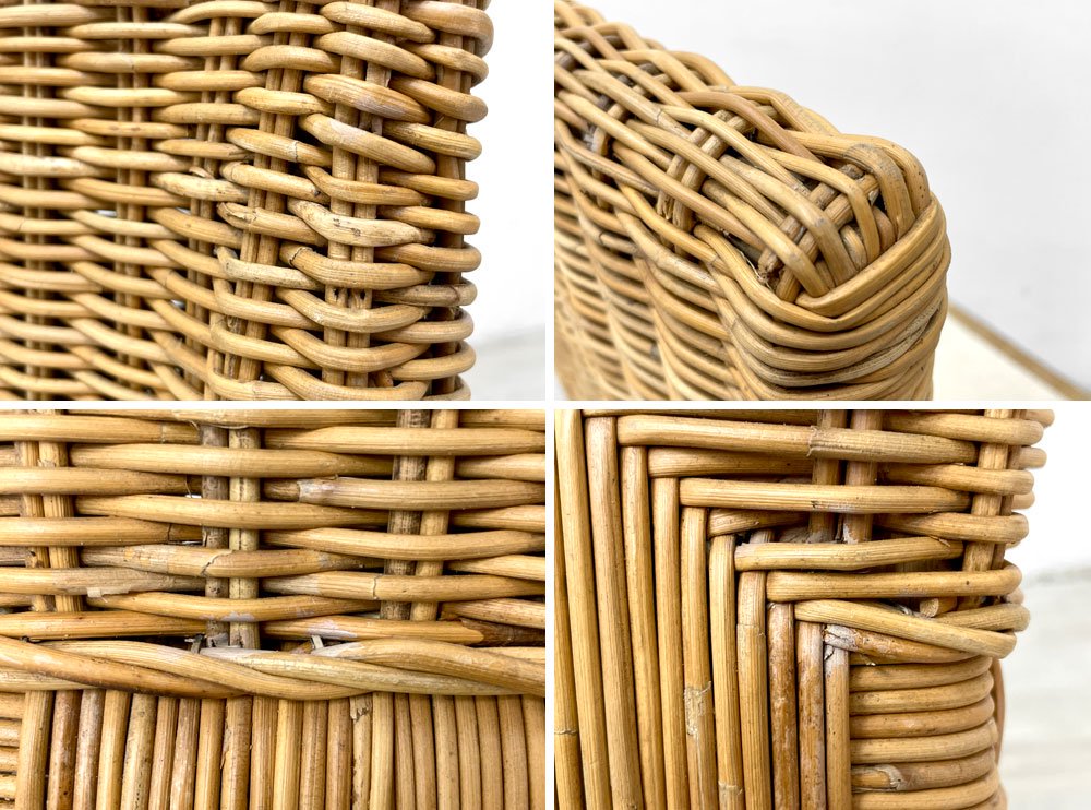 細かな擦れや小傷、若干の染みがあり、ラタンには色ムラや素材特有の亀裂がございますが、強度に問題となる様なものではございません。また、座面裏のファブリックに染み汚れがございますが、美品と呼べるコンディションを保っており、これからも気持ちよくご使用頂けます。