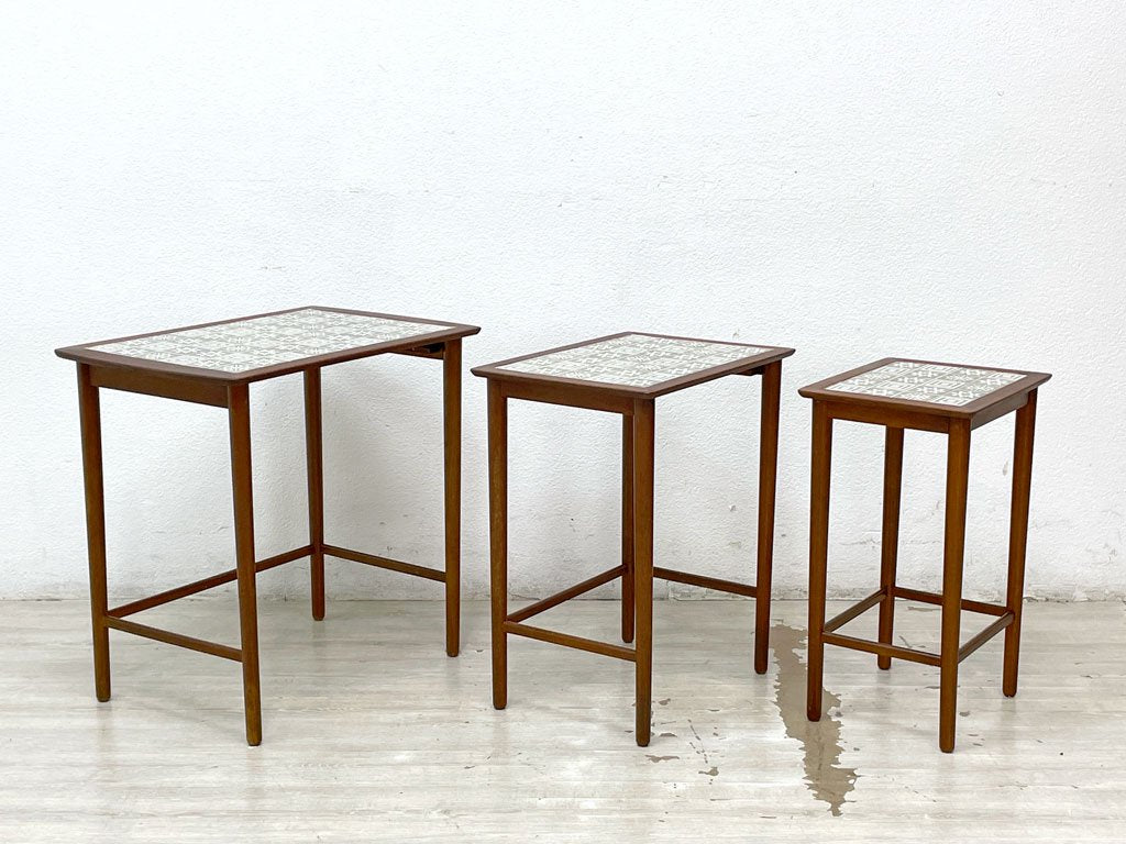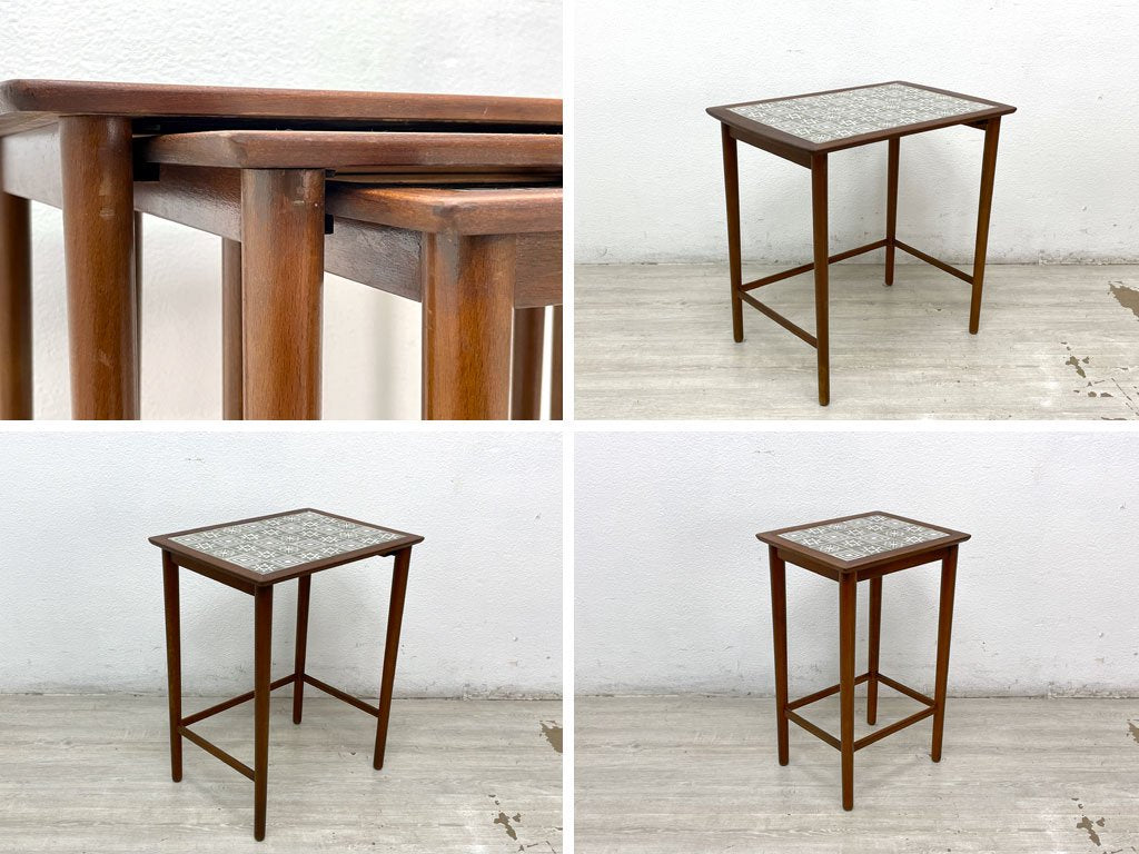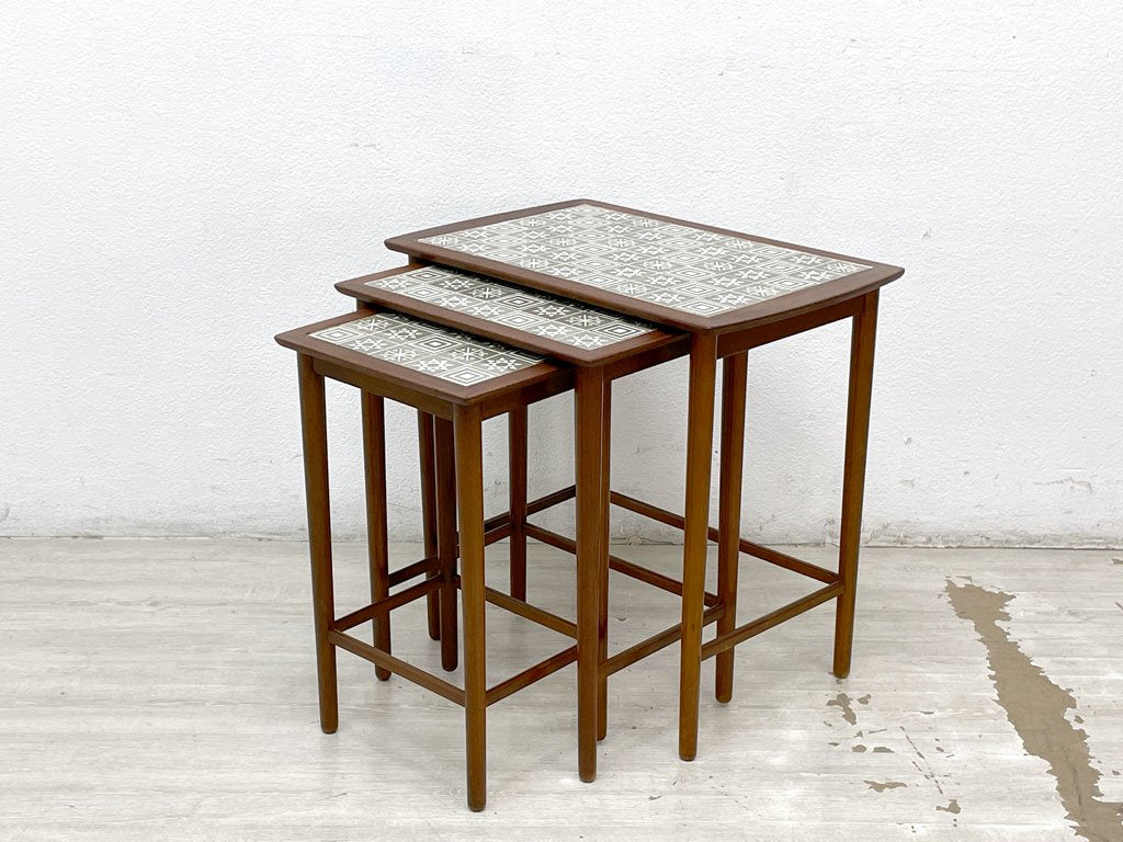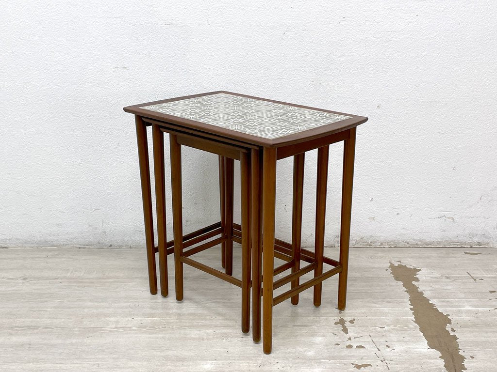 デンマークビンテージ タイルトップ ネストテーブル チーク材 サイドテーブル 北欧家具 ●