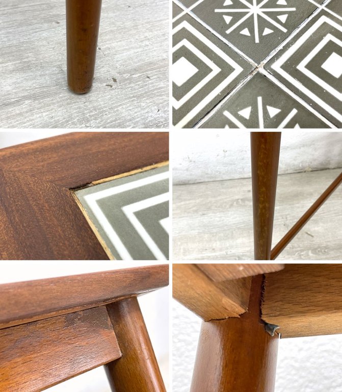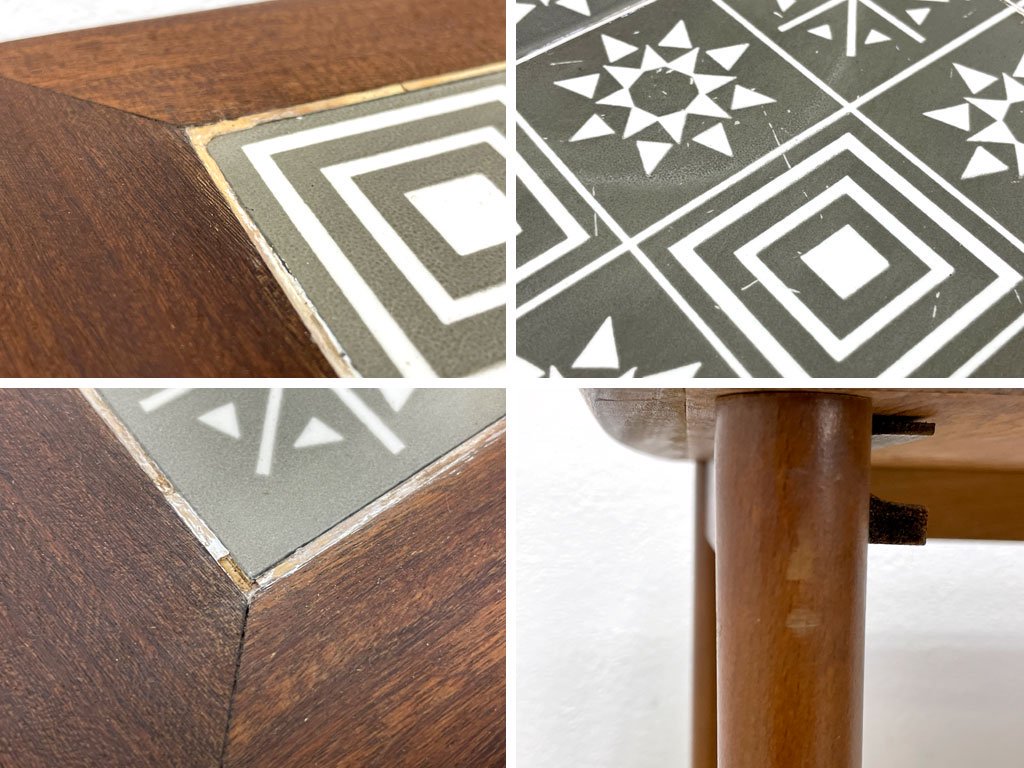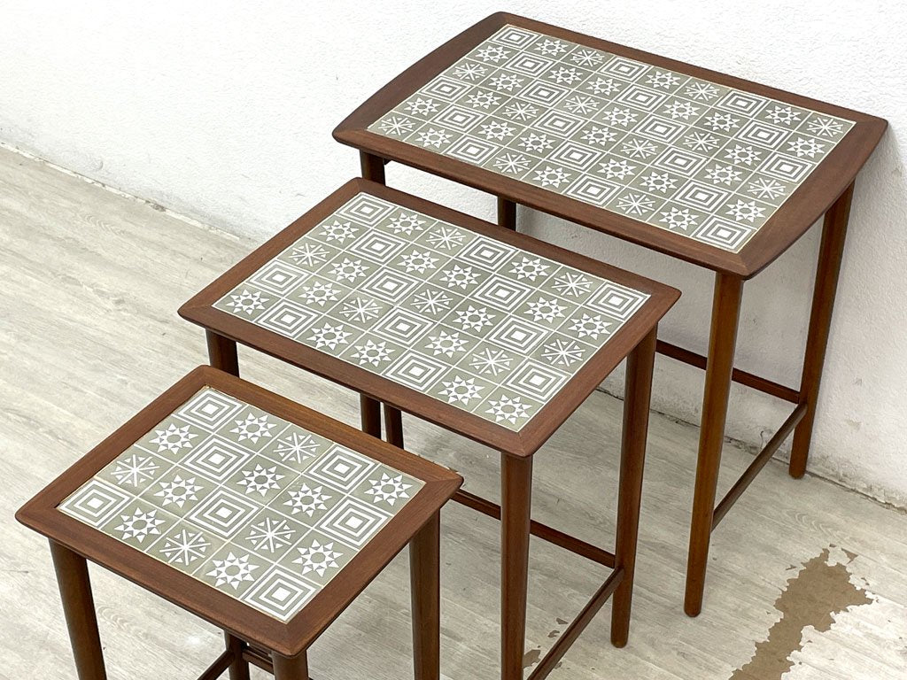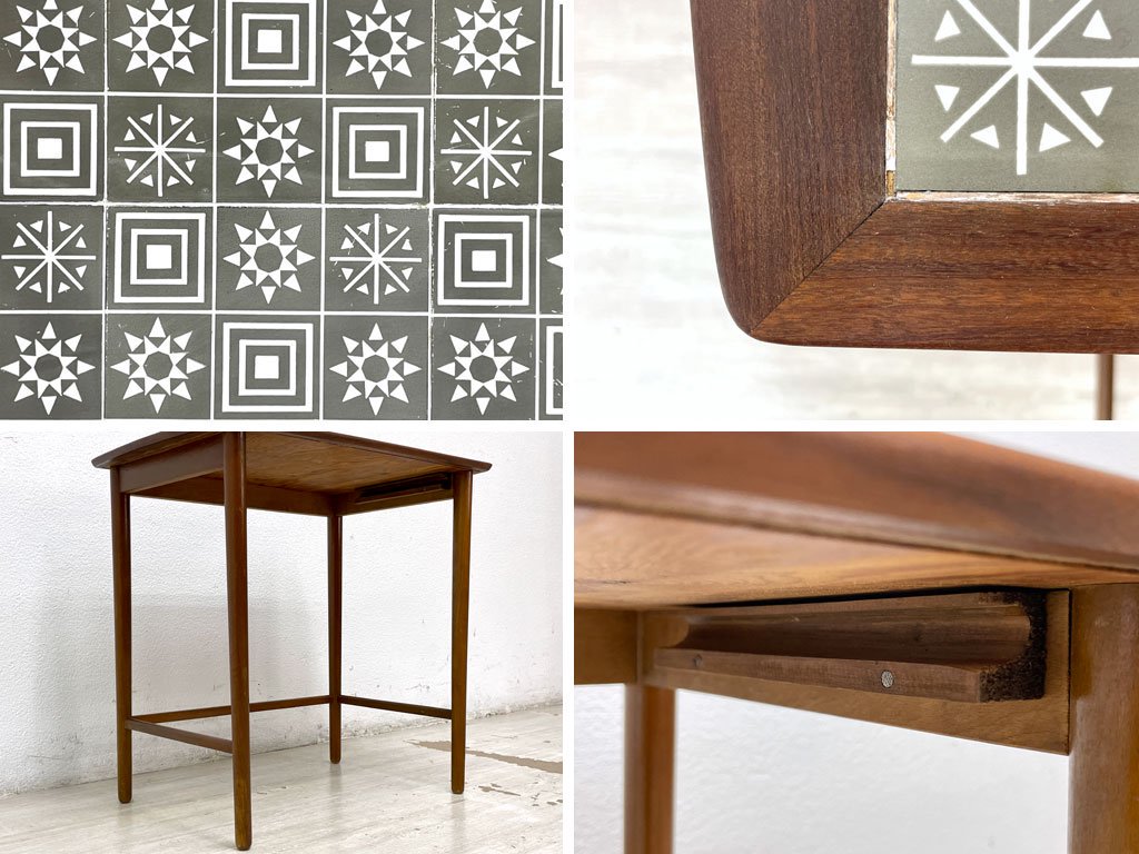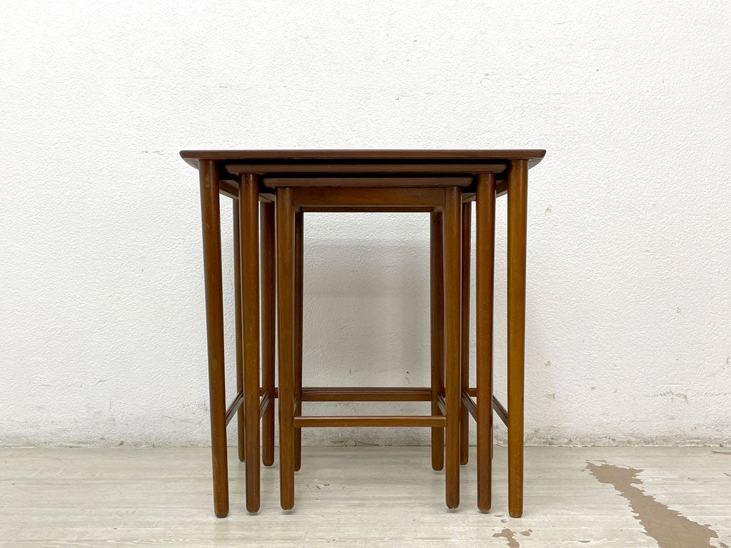 デンマークビンテージ タイルトップ ネストテーブル チーク材 サイドテーブル 北欧家具 ●