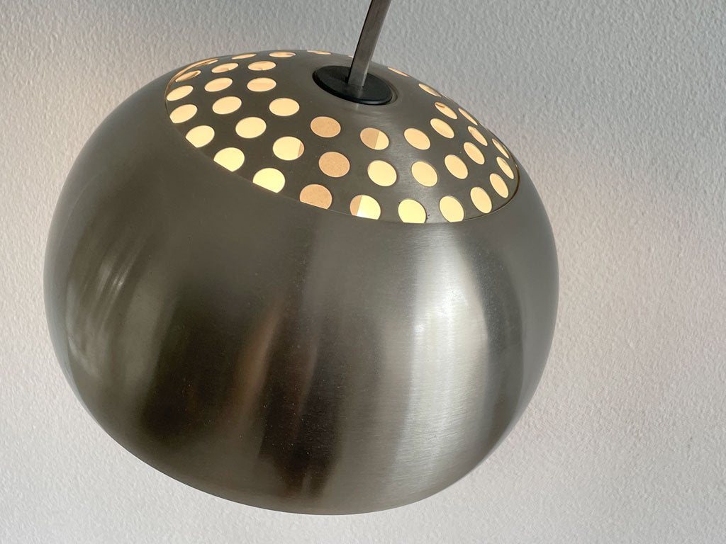 大理石のベースから伸びたポールはランプシェードまで約2メートルあり、ダイニングテーブルの中央にシェードが来るように設置した際、チェアの後ろを人が通れる絶妙なバランスになっています。