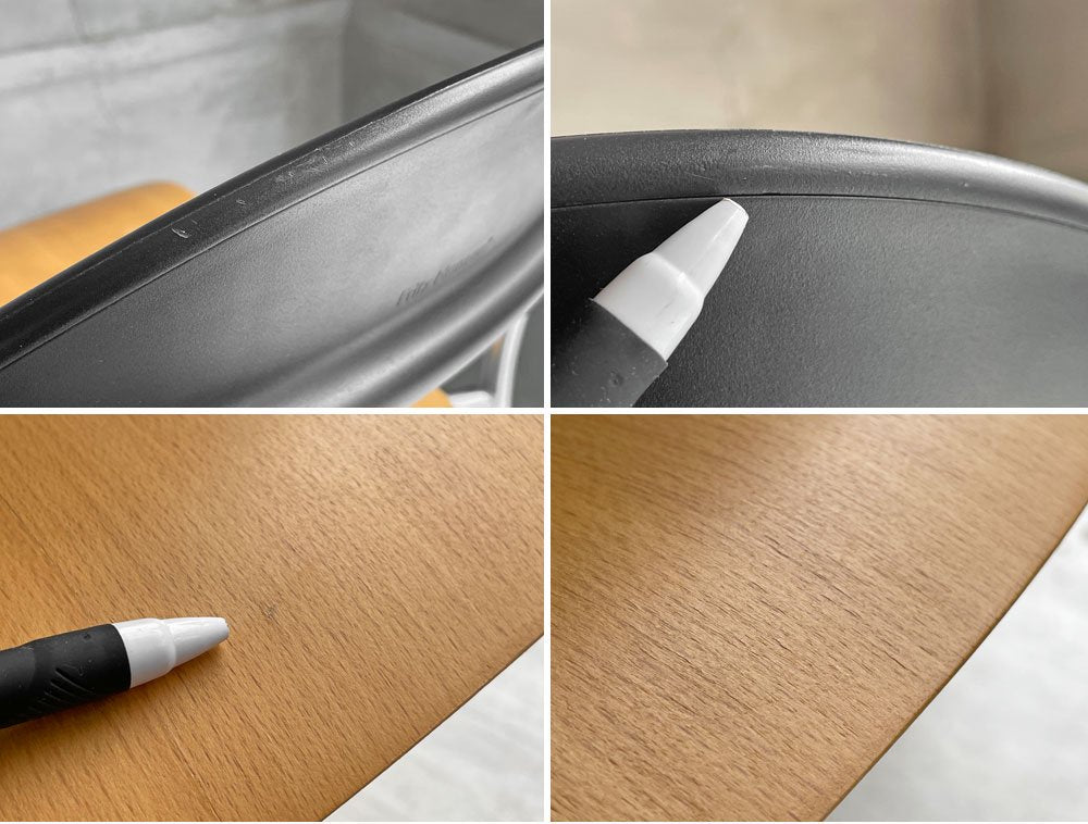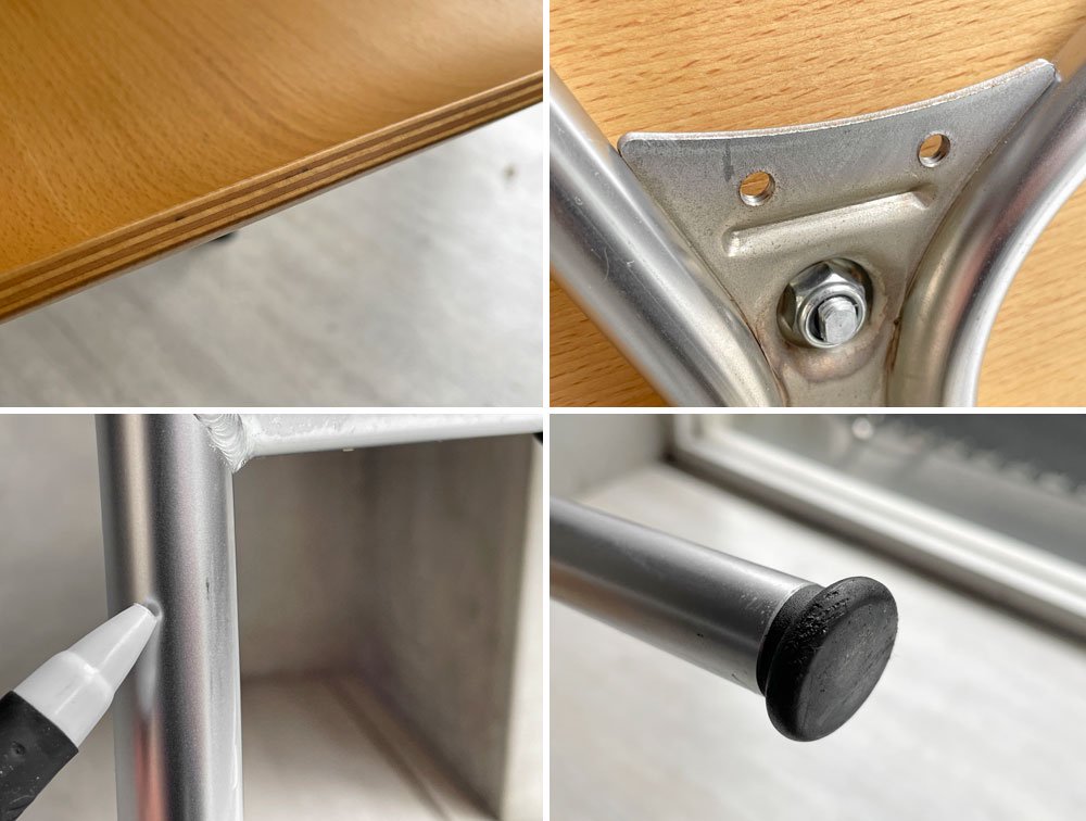 使用に伴い、座面・背もたれには細かな打痕や小傷が見受けられ、フレームには擦れやくすみ、微細な錆がございます。その他大きく目立つようなダメージは無く、これからも実用頂けるコンディションを保っております。