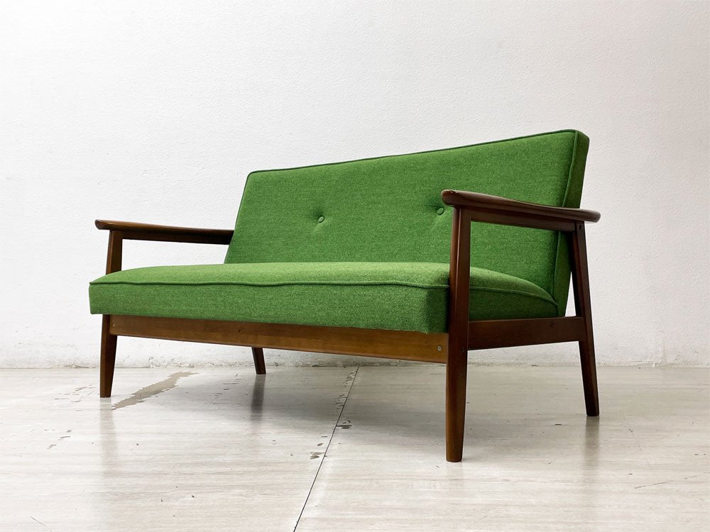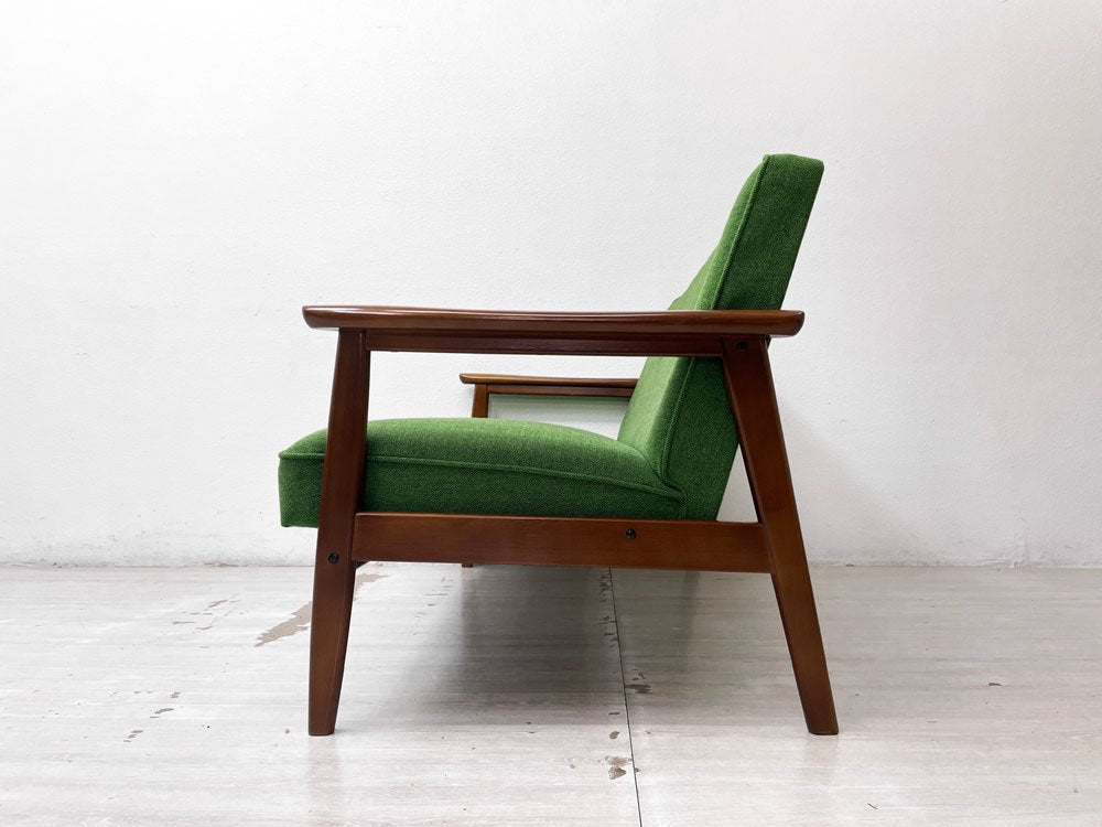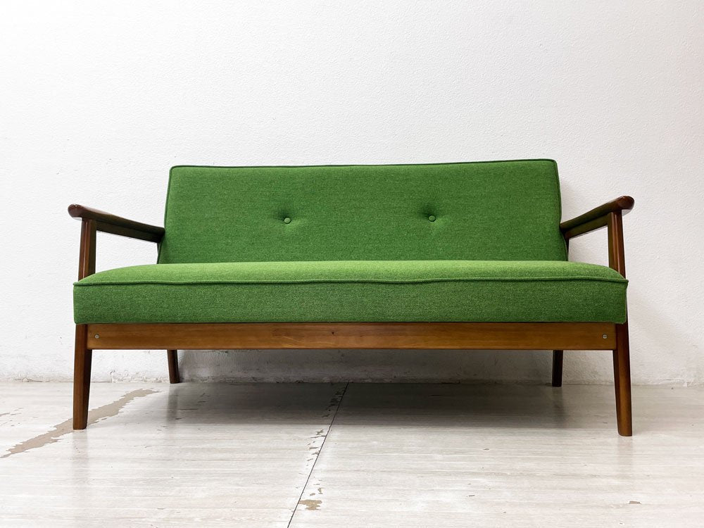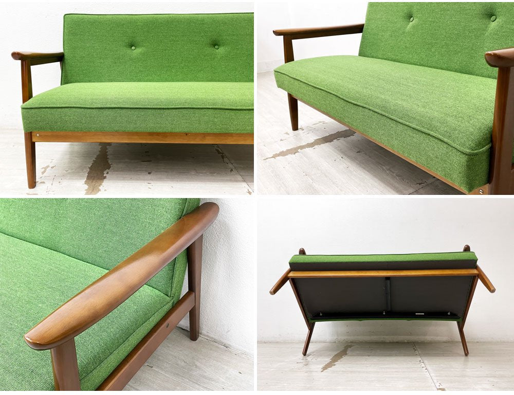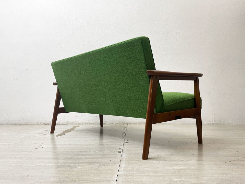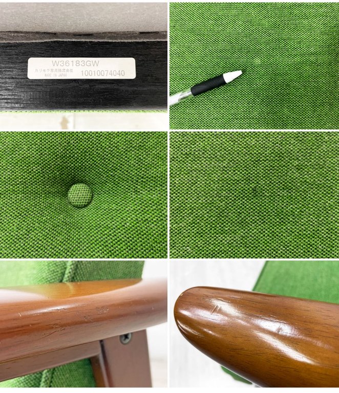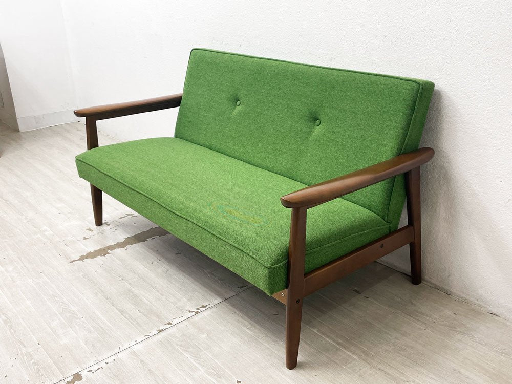 カリモク60 Karimoku Kチェア 2シーター 2Pソファ タープグリーン ミッドセンチュリー 廃番 希少 ●