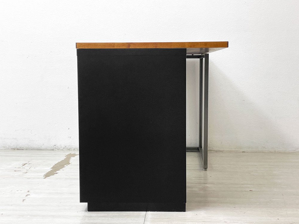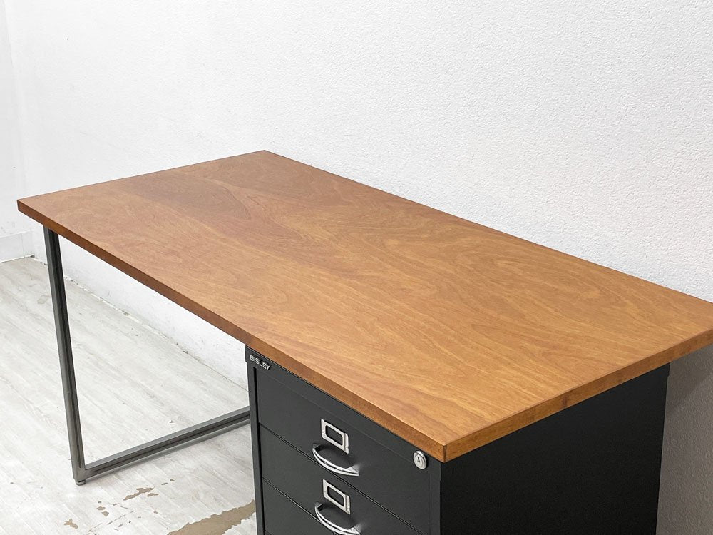 パシフィックファニチャーサービス P.F.S. × ビスレー BISLEY デスクセット バーチ天板 W140 & Lレッグ シングル スチールクリア & 1F3 ファイリングキャビネット 計3点 ●