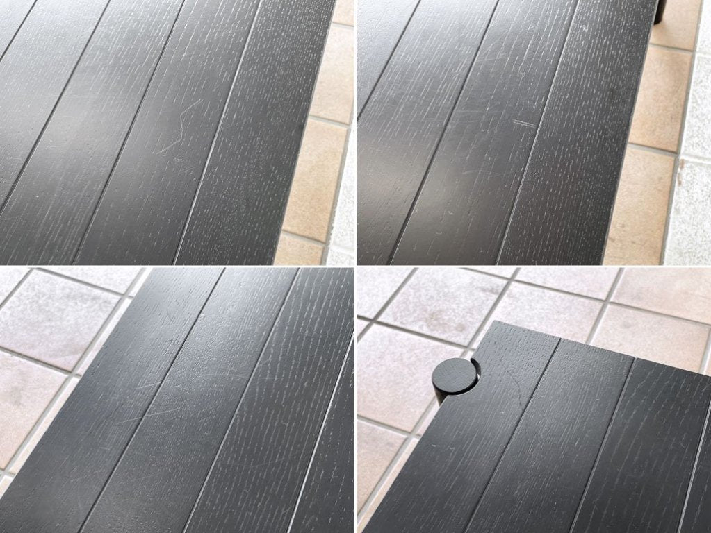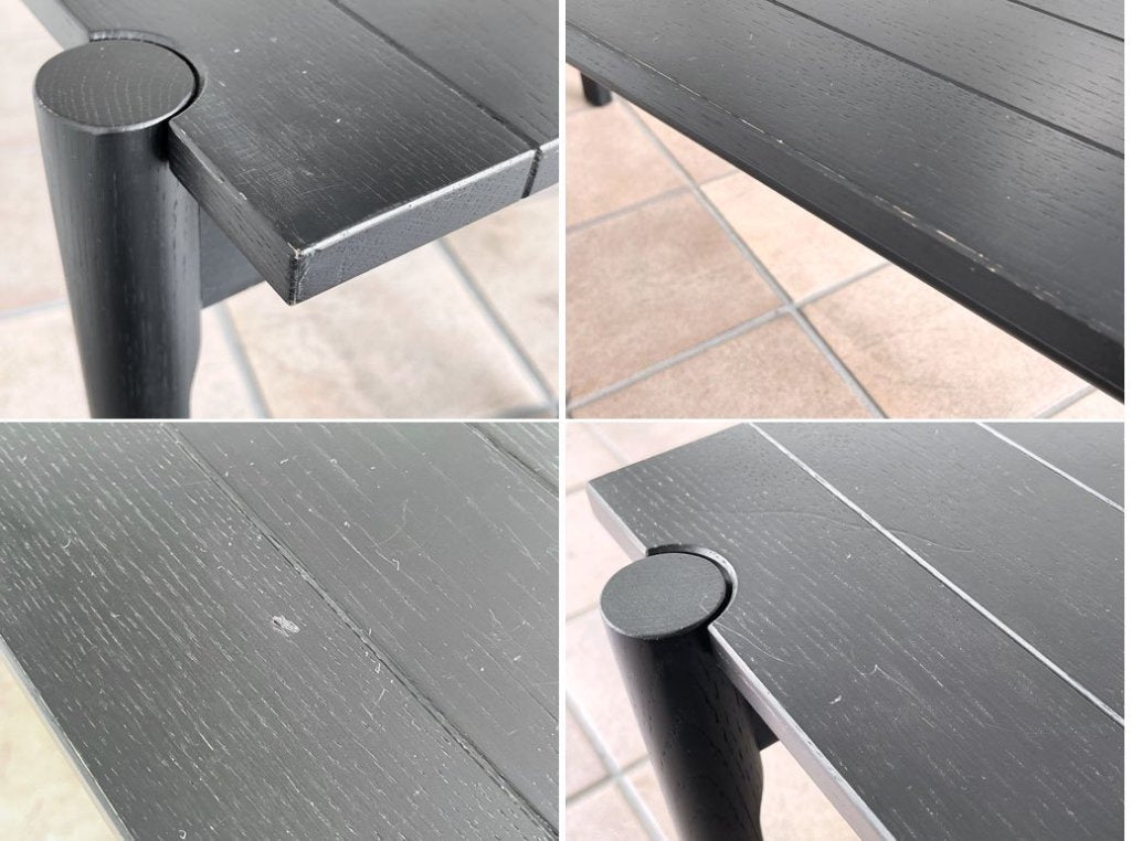 使用に伴い座面に擦れや線傷、角に細かな打痕等が散見されますが、大きく目立つダメージはございません。ガタツキや割れ等使用上問題となるダメージも見られず、概ね良好なコンディションを保っております。