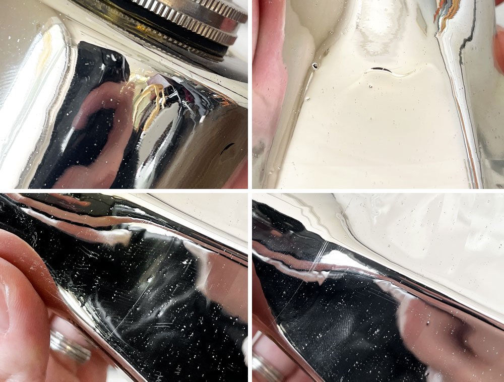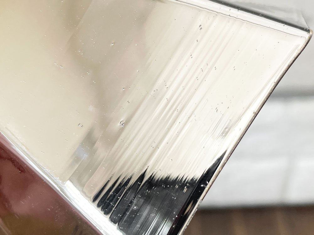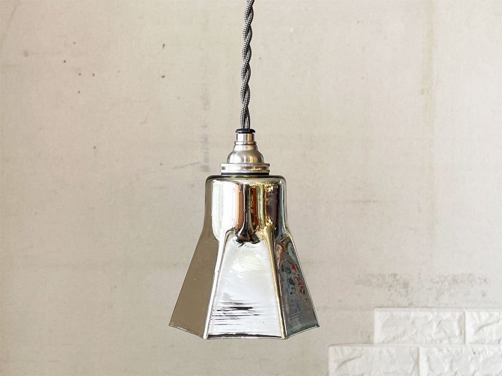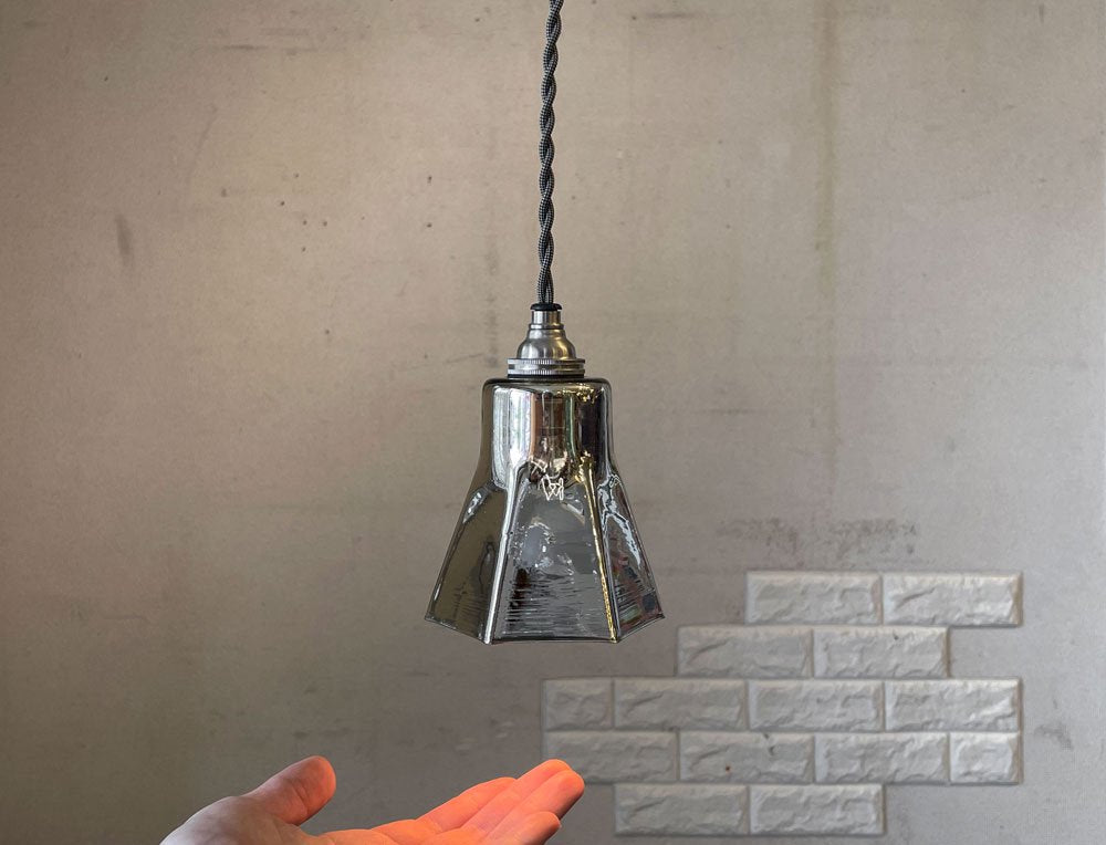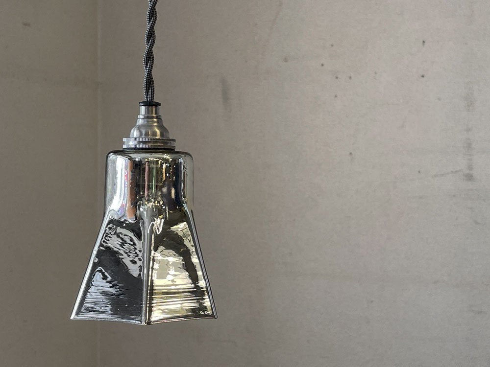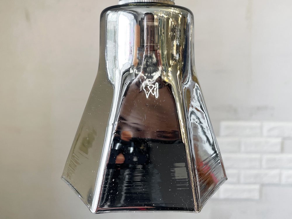 丁寧に手作りされる氏の作品らしい細かい気泡が入ったシルバー色のシェードは、水銀を施したミラーリング加工。