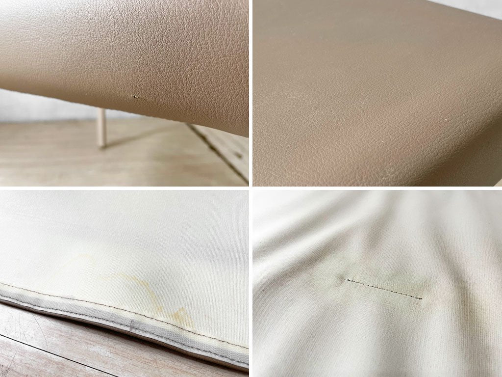 使用に伴い、傷や擦れ、打痕やペイントロスが見受けられます。また、座面カバーには僅かな擦れや裏面に染み、座面ヌードに僅かな黒ずみやシミが見受けられますが、着座には問題ございません。その他、使用に問題となる大きなダメージは無く、これからも安心してご使用頂けるコンディションを保っております。
