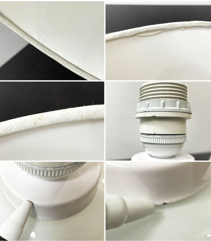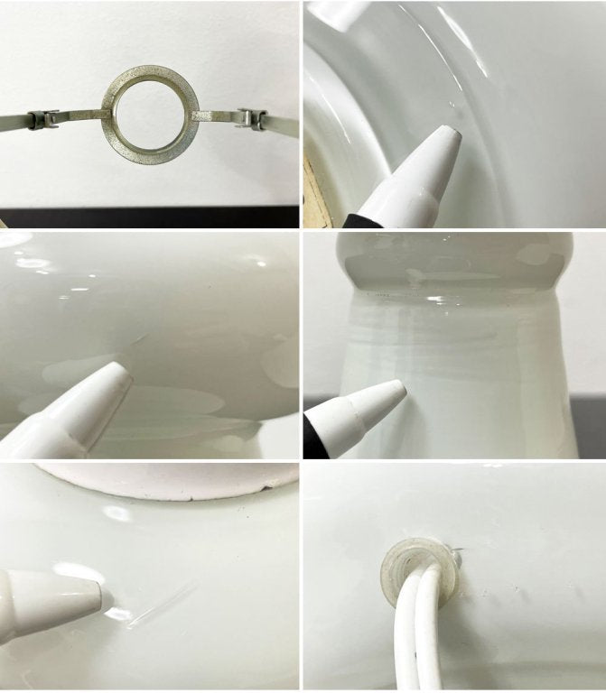 使用に伴い、ガラスベースには擦れや線傷、打痕、シェードには染みや取り切れない汚れなどがございます。その他、製造痕や金属部に錆び等が見受けられますが使用上問題となる大きなダメージはございません。これからも気持ち良く実用頂けるコンディションを保っております。