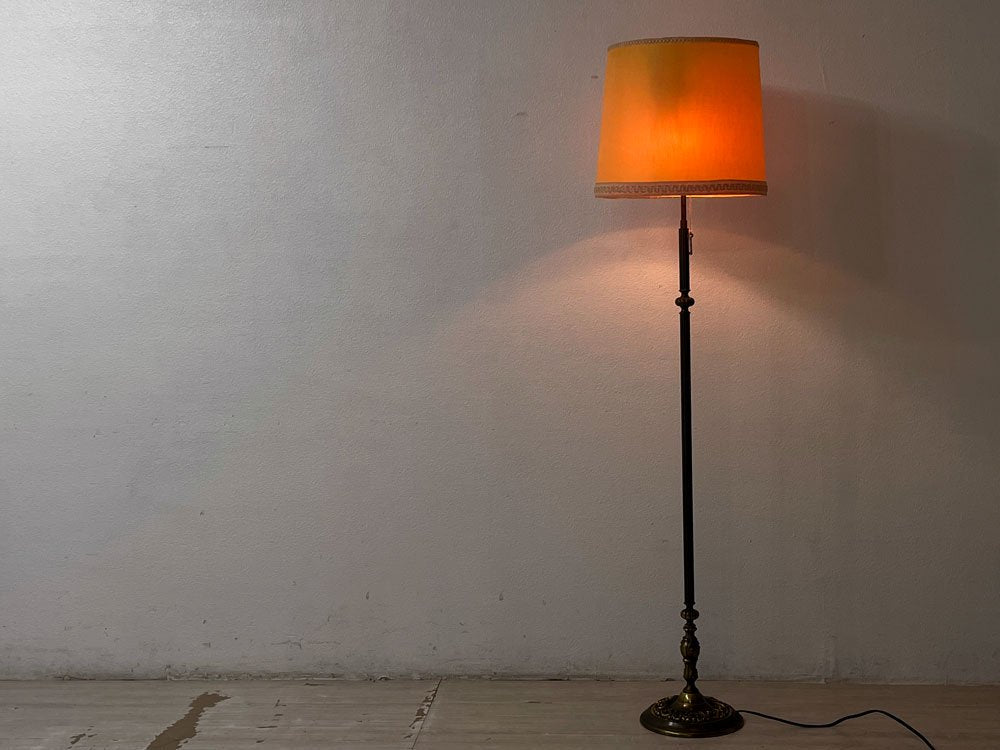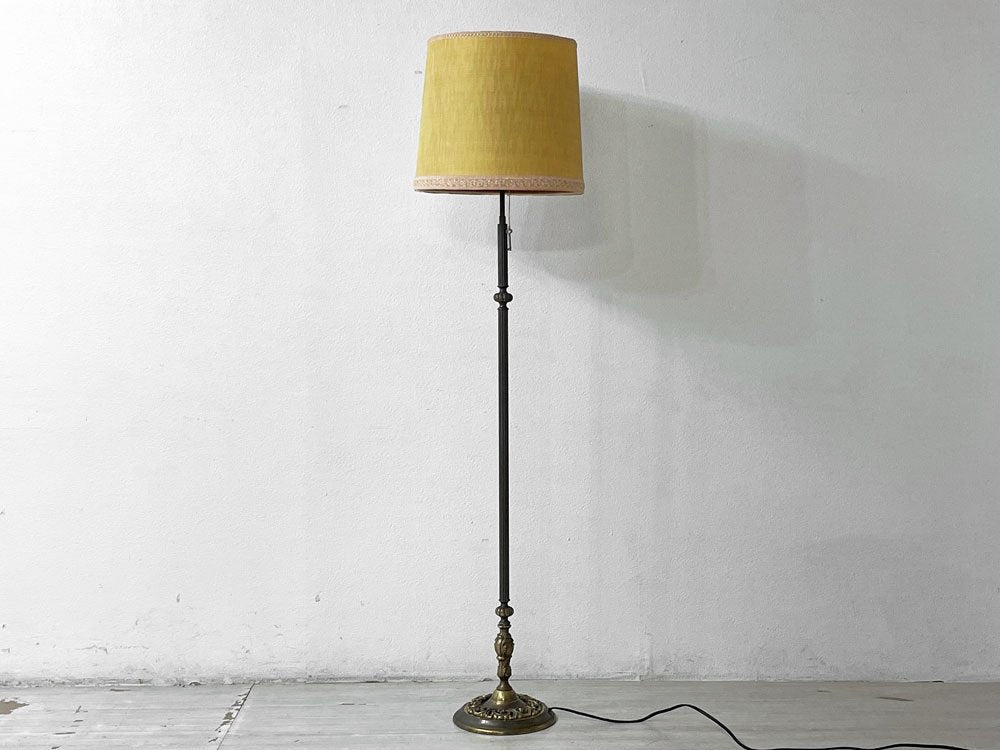 USビンテージ Vintage スタンドライト フロアライト 2灯 布シェード クラシカル ●