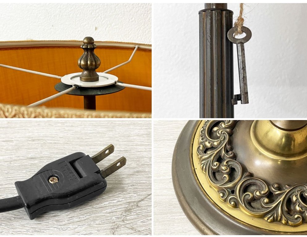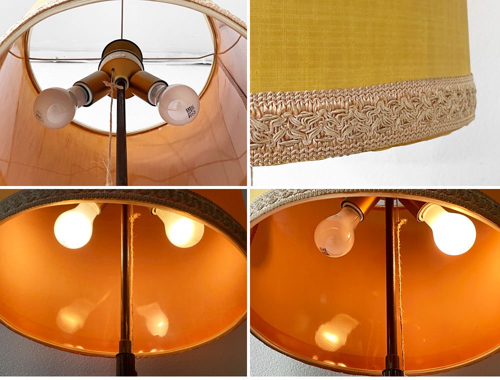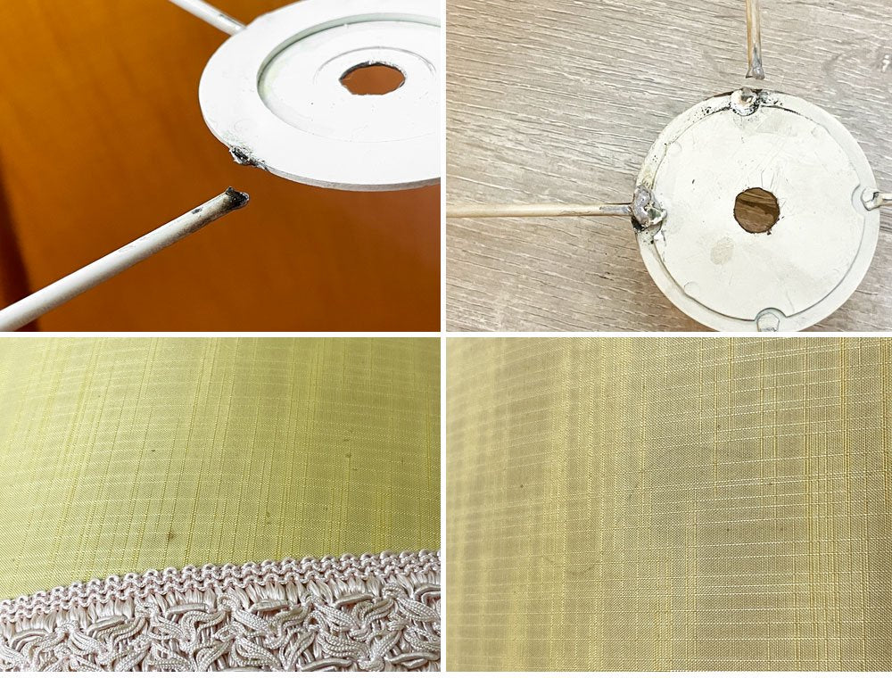 こちらはビンテージ品となります。経年に伴う擦れや傷、シェード部分の色褪せや染み、金属部分のくすみや錆、ペイントロス等が散見されます。またシェードカバーとスタンド部分を接続する溶接部分が2本外れておりますが、現状取付自体は可能となっております。また、スイッチ部分がオリジナルではないものが後年にて付け替えられた形跡がございます。多少の使用感はございますが、機能を損なうような大きなダメージなどは特にございません。