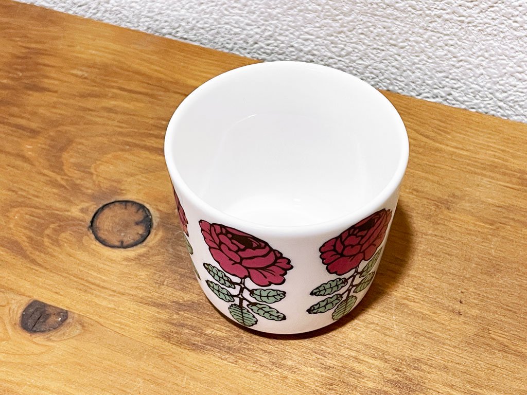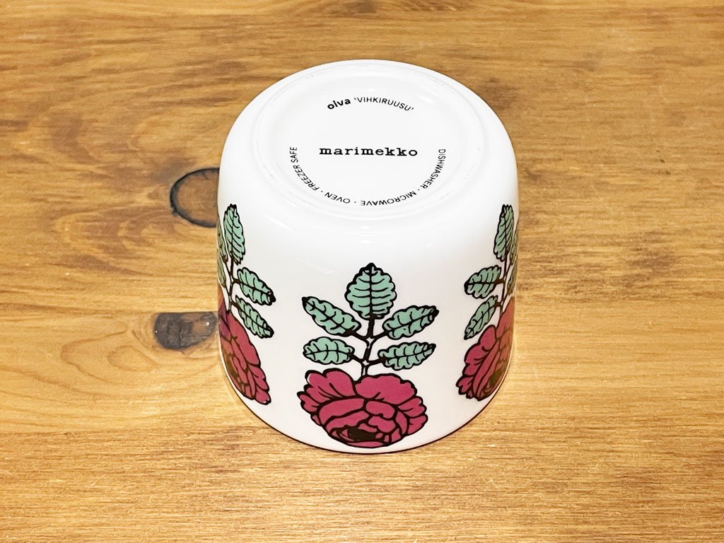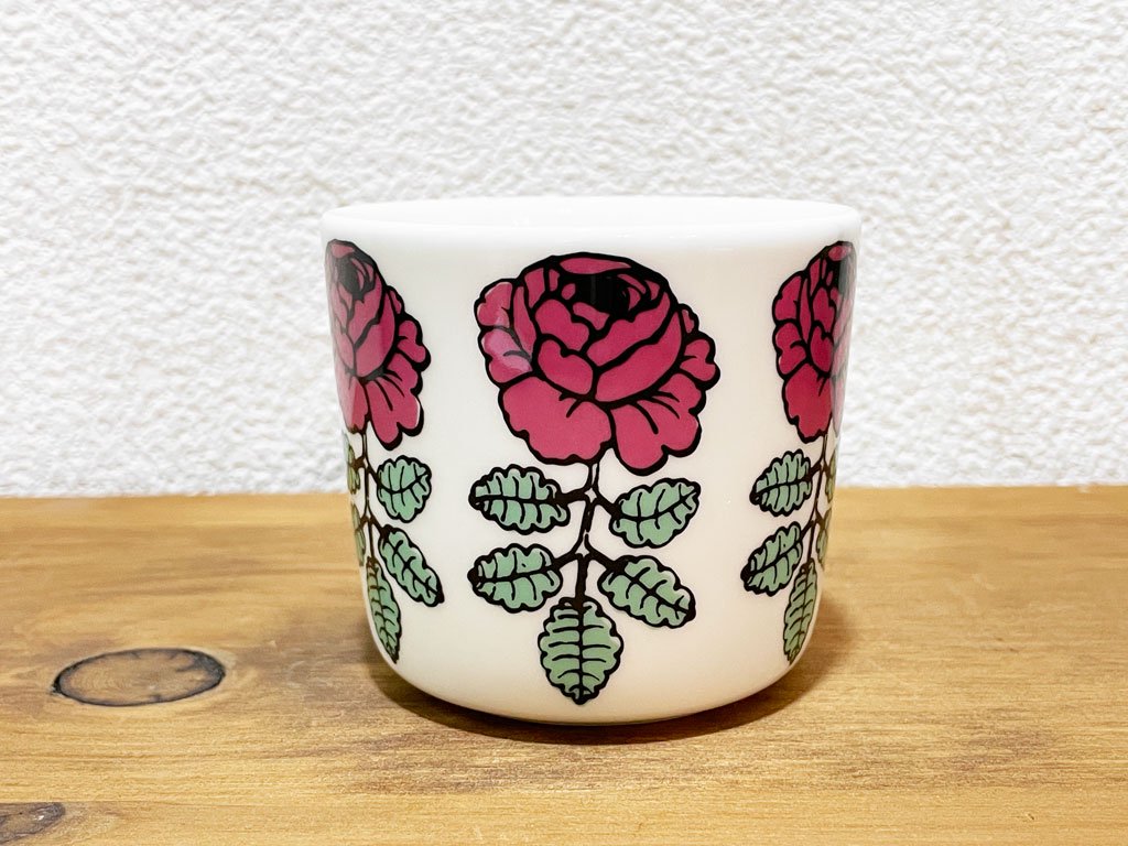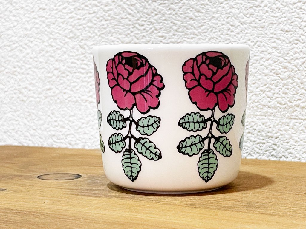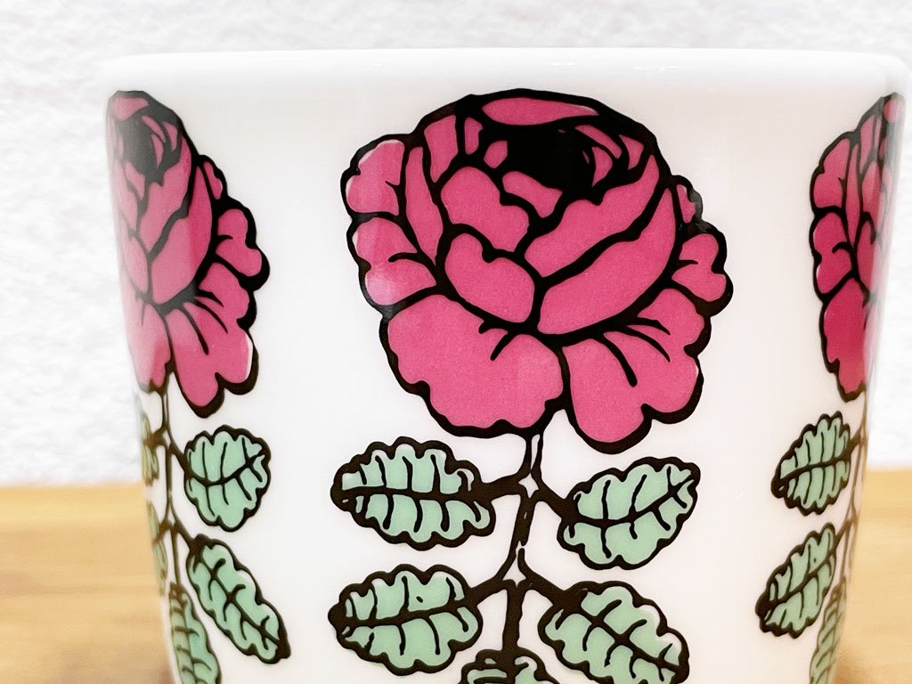こちらは、同社のアイコンとも言えるウニッコのテキスタイルの生みの親で、フィンランドの名デザイナー、Maija Sofia Isola(マイヤ・イソラ)が手掛けた『ヴィヒキルース VIHKIRUUSU』のラテマグです。