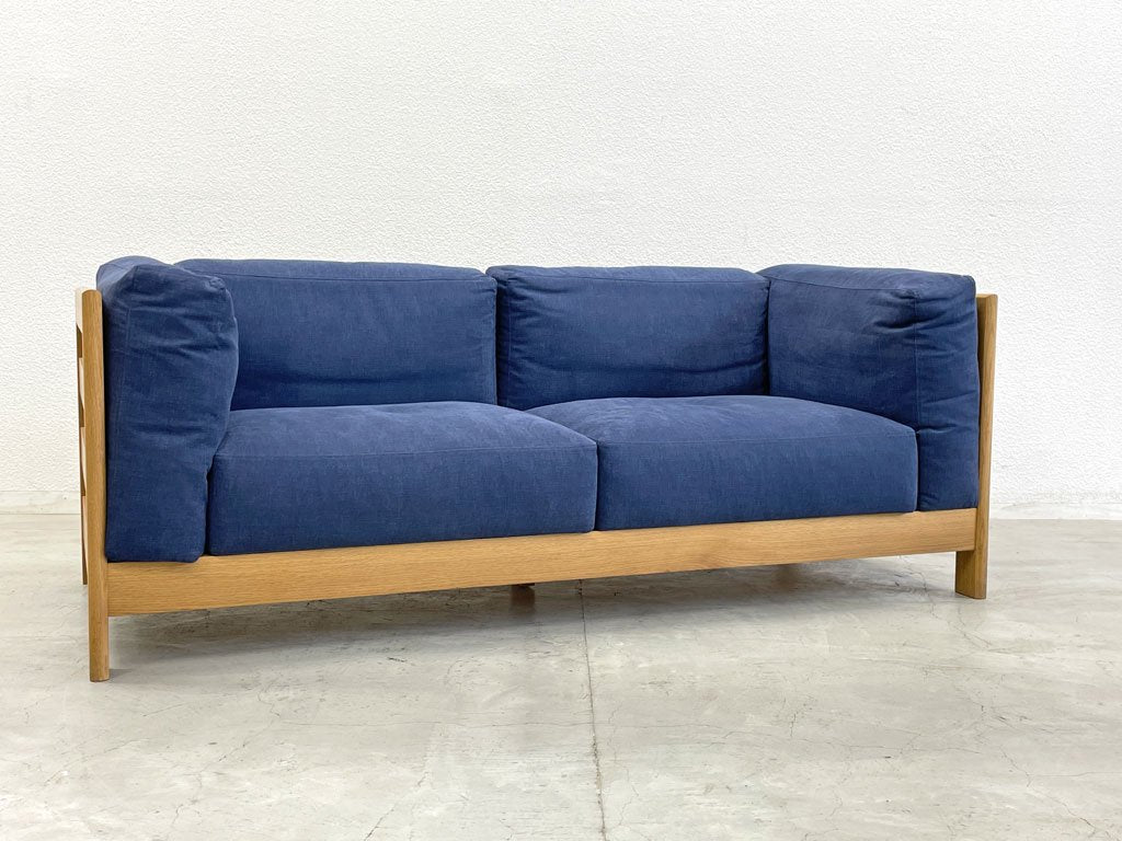 オーク無垢材のフレームが柔らかい印象を与え、包み込むようなクッションはウレタンの上にフェザーを組み合わせたエレガントな肉厚、ブールのファブリックはポップさを演出します。