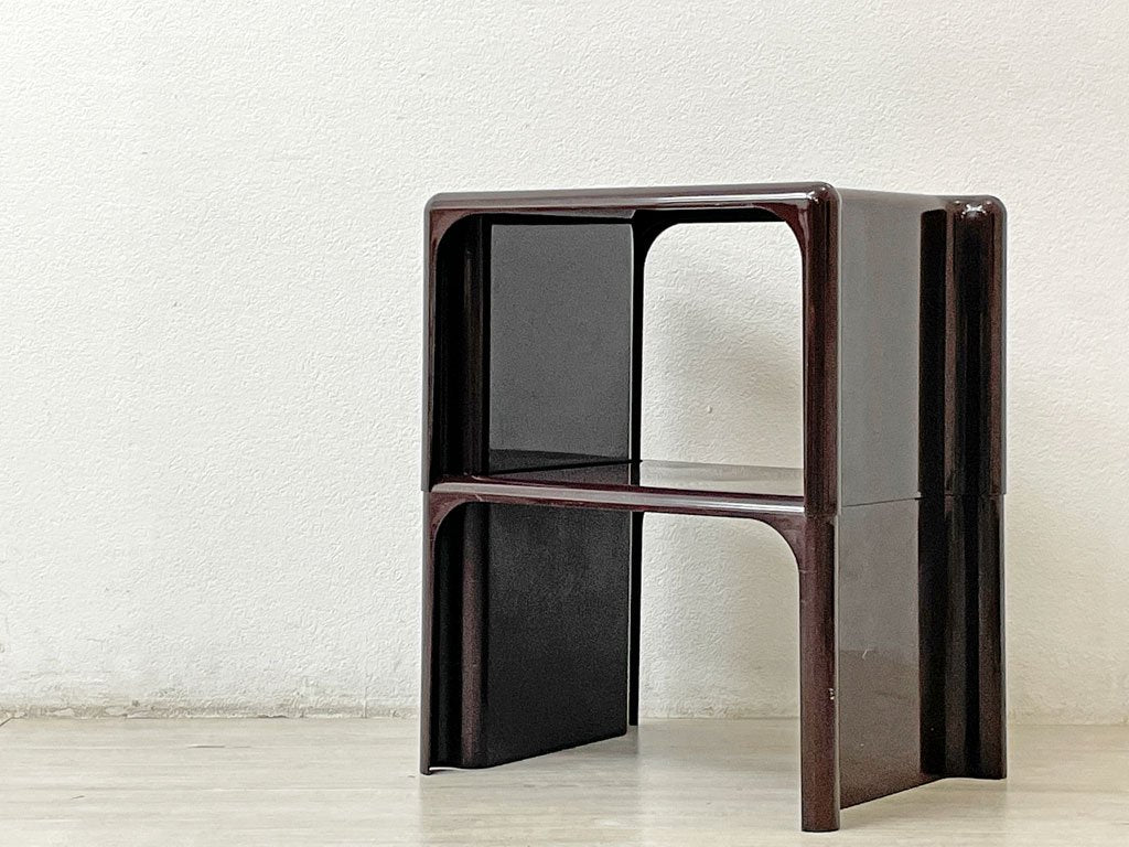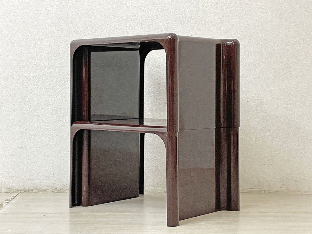 エルコ Elco Scagno サイドテーブル スタッキング シェルフ ジオット・ストッピーノ Giotto Stoppino プラスチック製 ブラウン イタリアモダン スペースエイジ ●