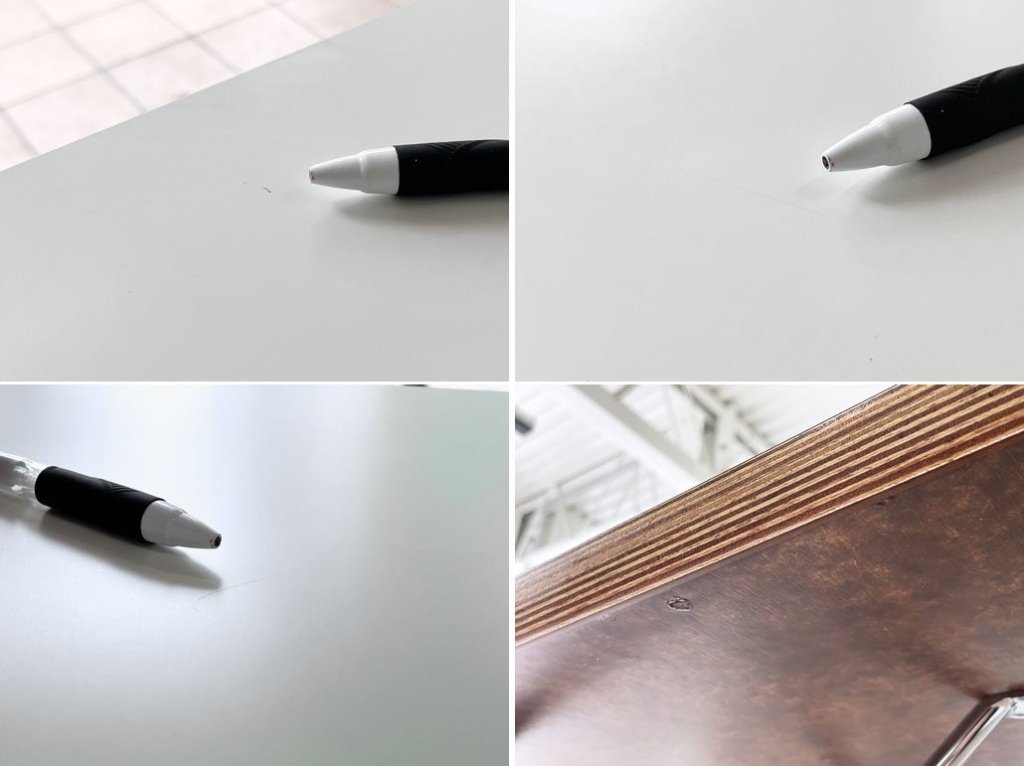 使用に伴い天板に軽微な擦れと小傷、脚に僅かなくすみはございますが、いずれも目立つものではございません。その他大きなダメージも見受けられず、使用感の少ない良好なコンディションを保っております。