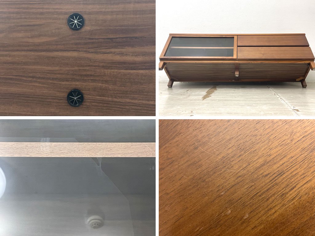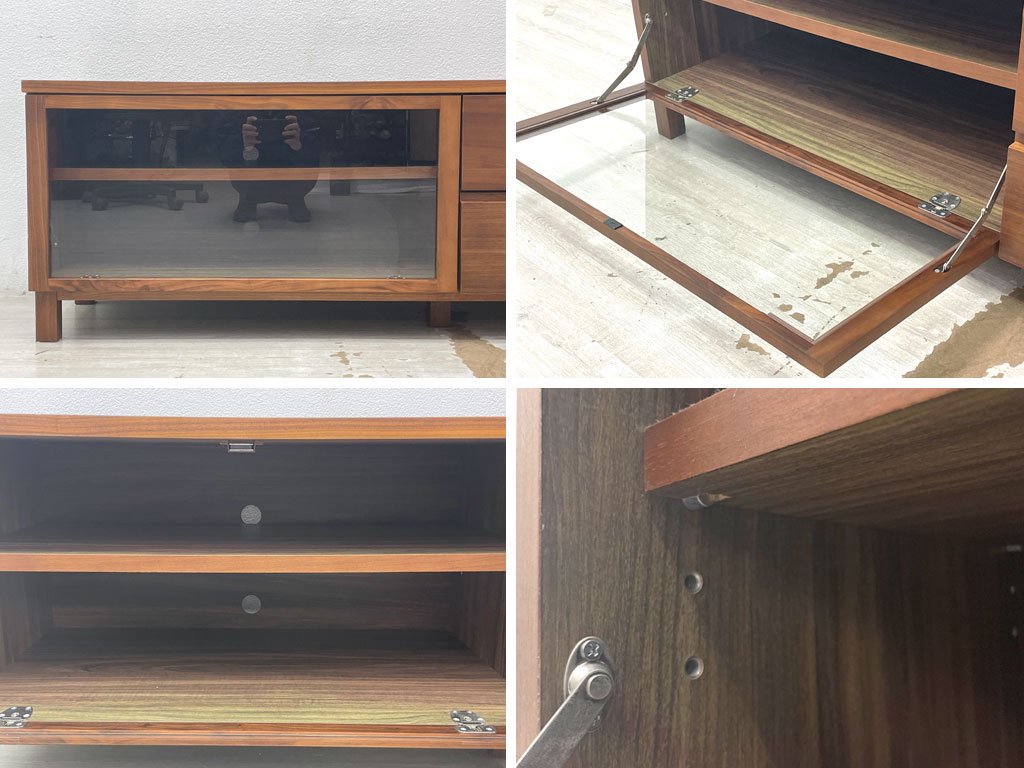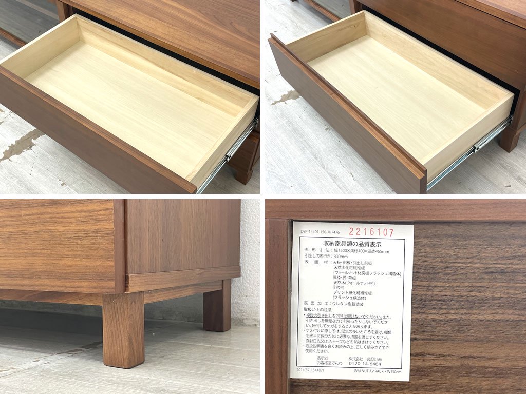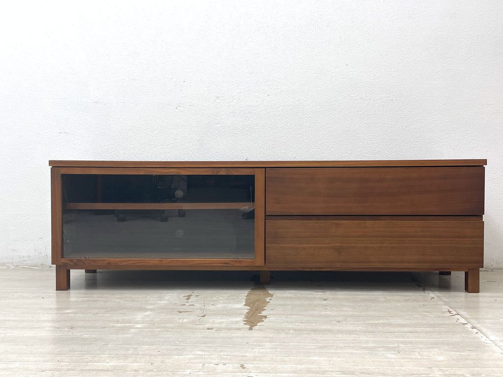 無印良品 MUJI ウォールナット材 AVラック AVボード テレビ台 ガラス扉 フラップ扉 抽斗2杯 W150cm 廃番 参考定価¥39,900- ●