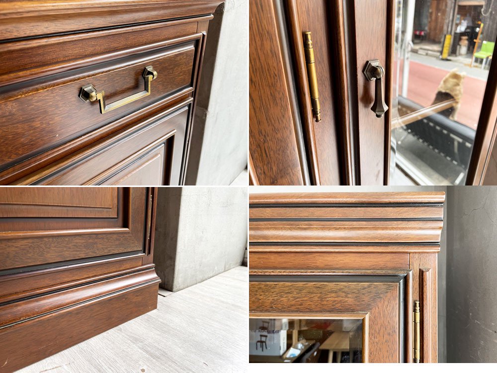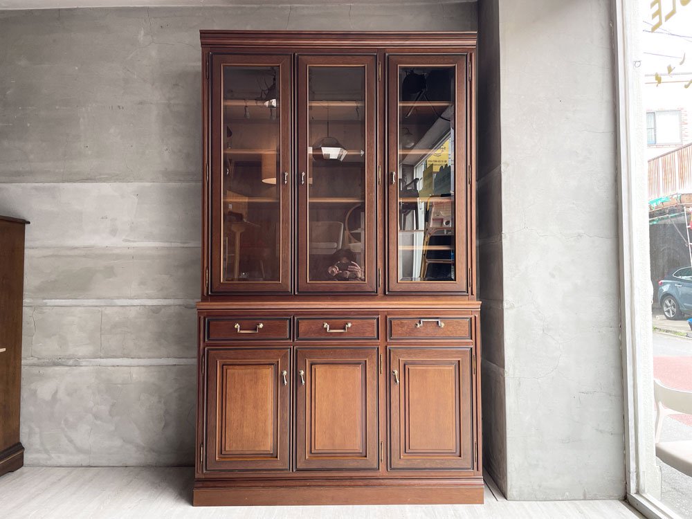 マルニ木工 MARUNI 地中海シリーズ ガラス扉キャビネット カップボード 食器棚 3枚扉 クラシカルスタイル ♪