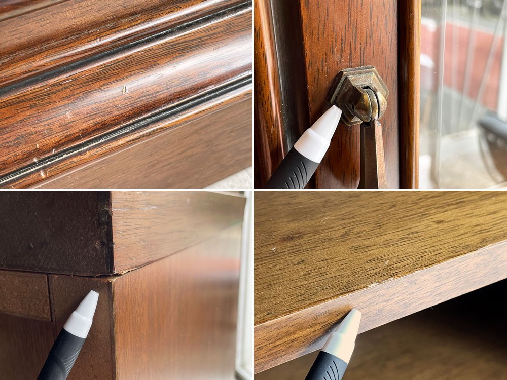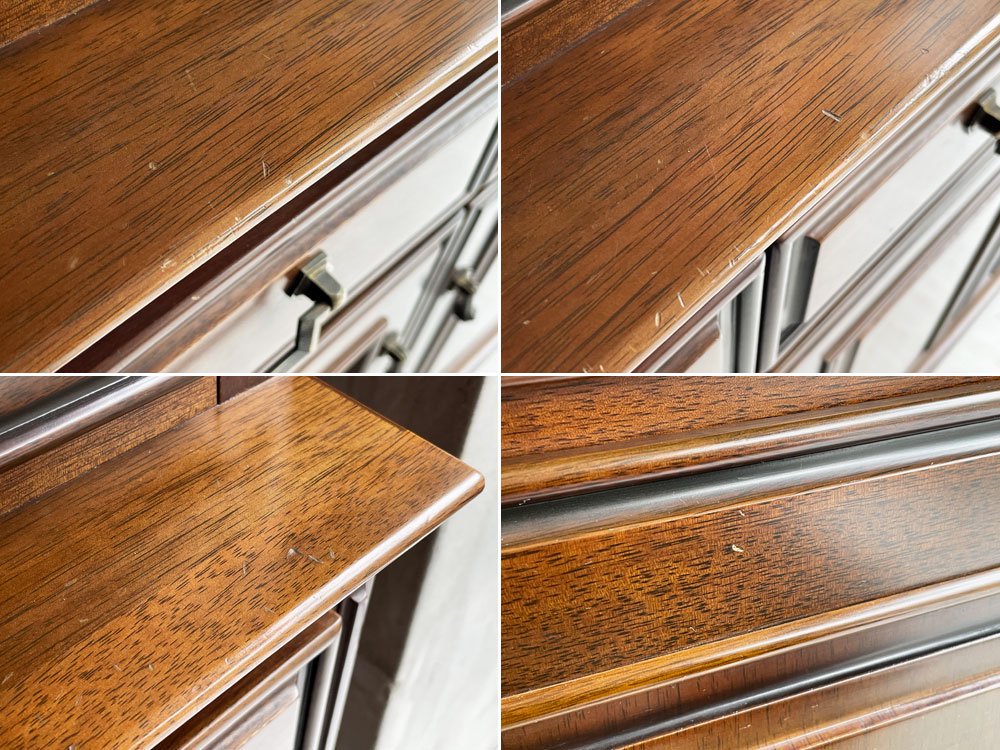 使用に伴い擦れや線傷、打痕等の小傷が見受けられます。また金属の取手部分には微細な錆やくすみがございます。その他ご使用頂く上で問題となるような大きなダメージは無く、これからも実用頂けるコンディションを保っております。