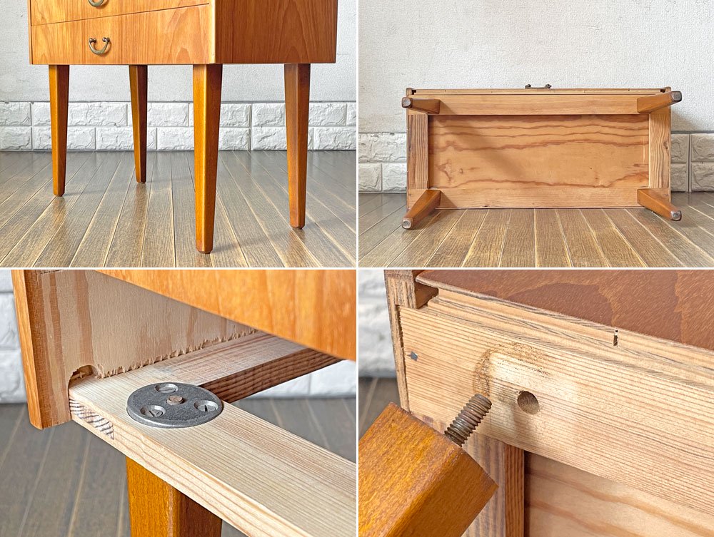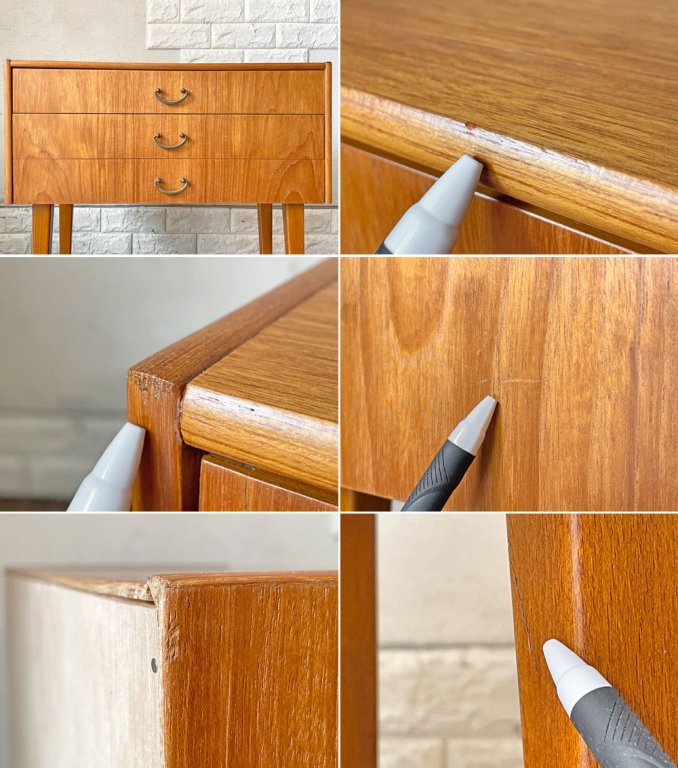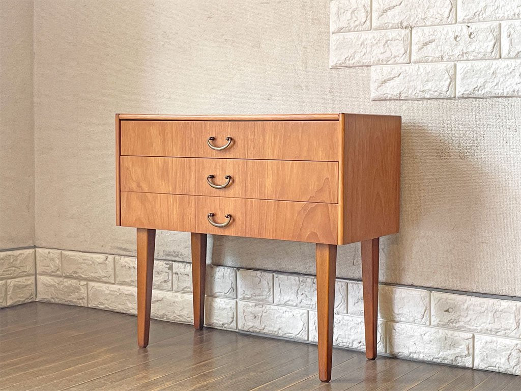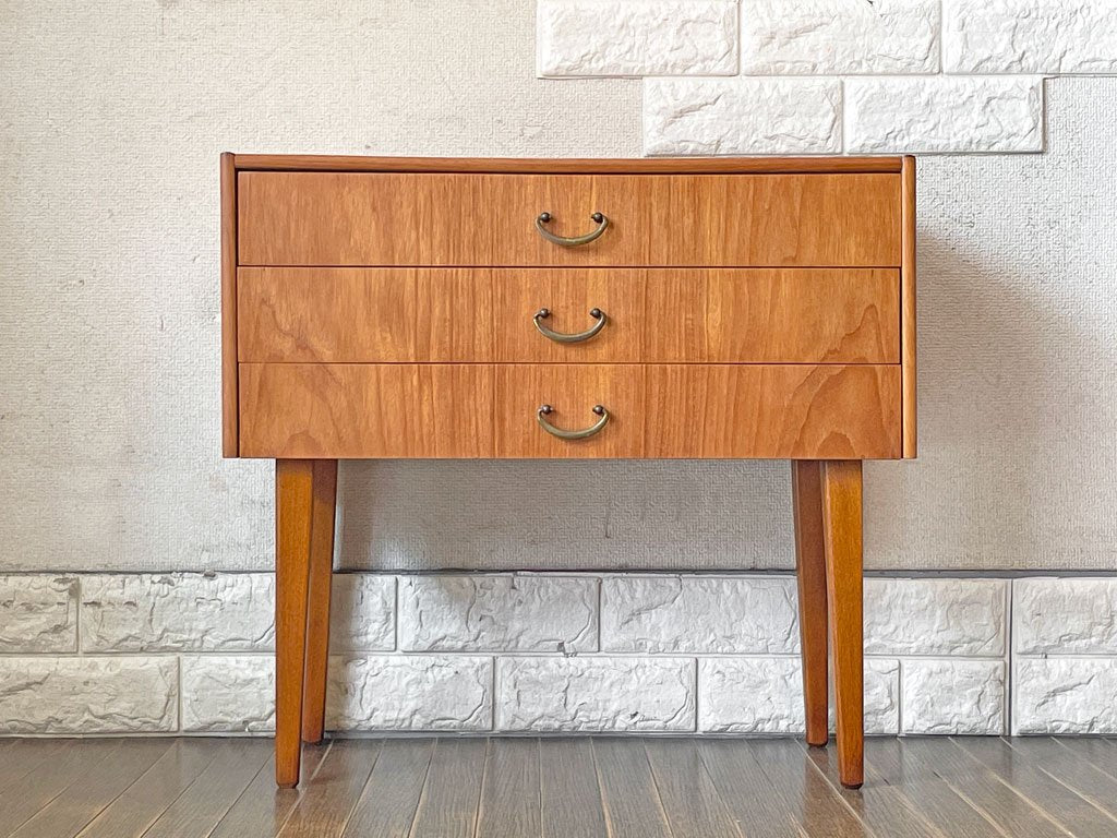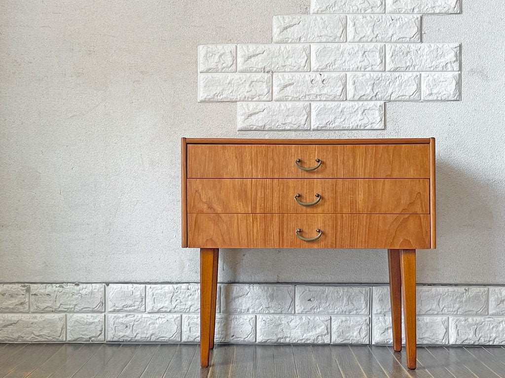 北欧ビンテージ Vintage チーク材 サイドチェスト スモールチェスト 3杯 ブラス ビーチ無垢材 スウェーデン 北欧家具 ◎