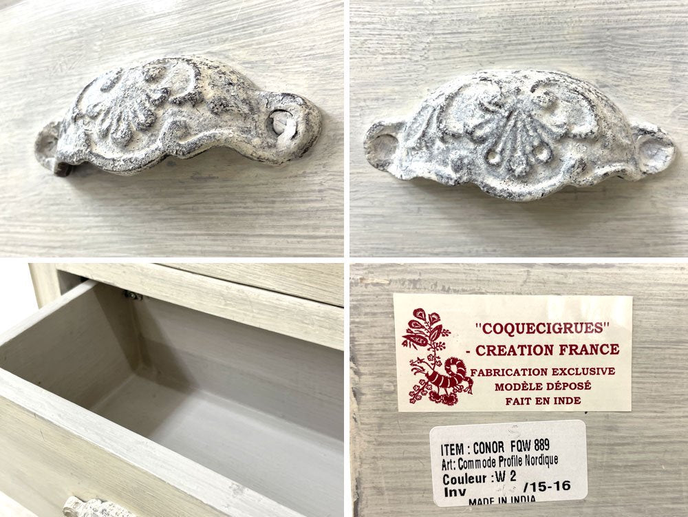 コクシグル Coquecigrues チェスト 4段 コンソールテーブル ペインテッド ロココ シャビーシック アンティークスタイル フランス ●