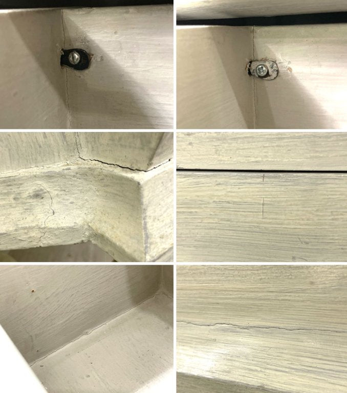 使用に伴う擦れや傷、打痕、軽微なペントロスがございます。また、引き出し内部のビスを一部取り換えてありますが、グラつき等の使用に問題となる様なダメージは無く、これからも安心してご使用頂けるコンディションを保っております。