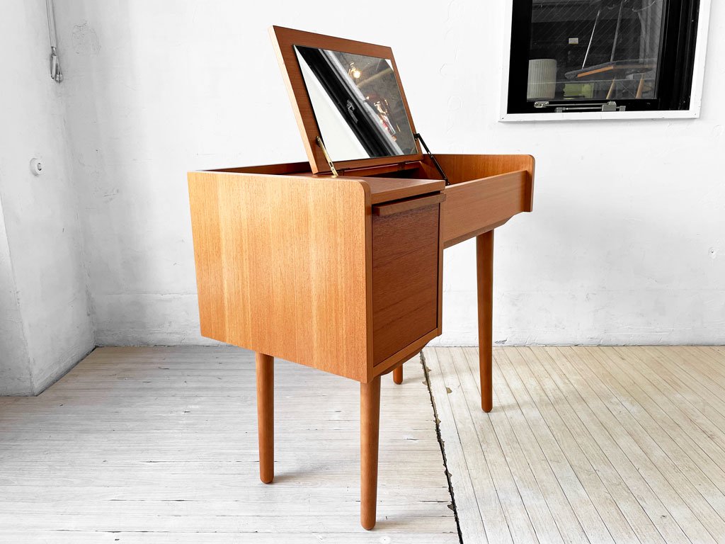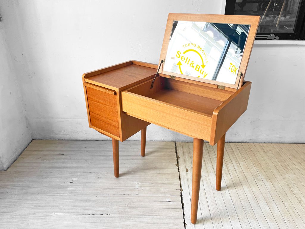 天板を開くとドレッサーとしての顔を出してくれます。鏡を使わない時にはデスクとしてもお使い頂けます。