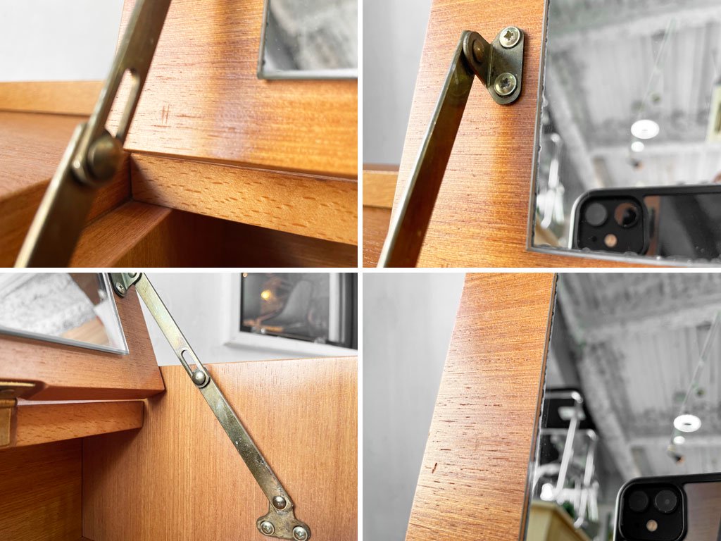 使用に伴う若干の傷や擦れ、色ムラやペイントロス、軽微な染みや金属金具のくすみ、鏡の縁周りに軽微な錆汚れがございますが、大きく美観を損なうようなダメージなども無く、ご使用に問題のある箇所などもございません。これからも安心してご使用頂けるコンディションを保っております。