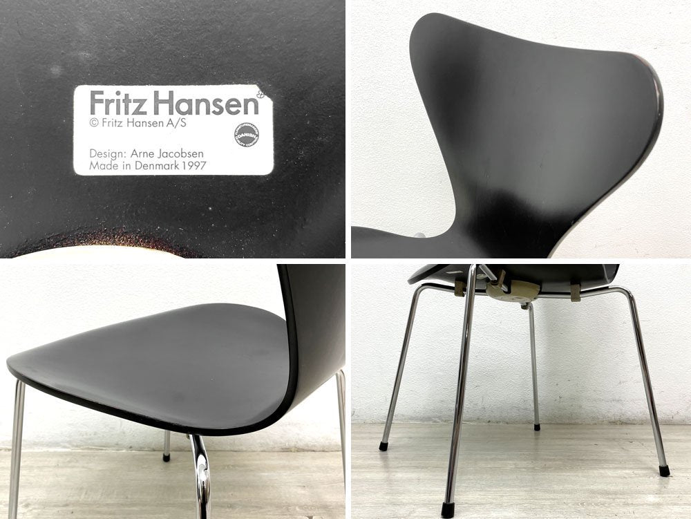 フリッツハンセン Fritz Hansen セブンチェア ブラックラッカー アルネ・ヤコブセン Arne Jacobsen スタッキングチェア デンマーク 北欧家具 E ●