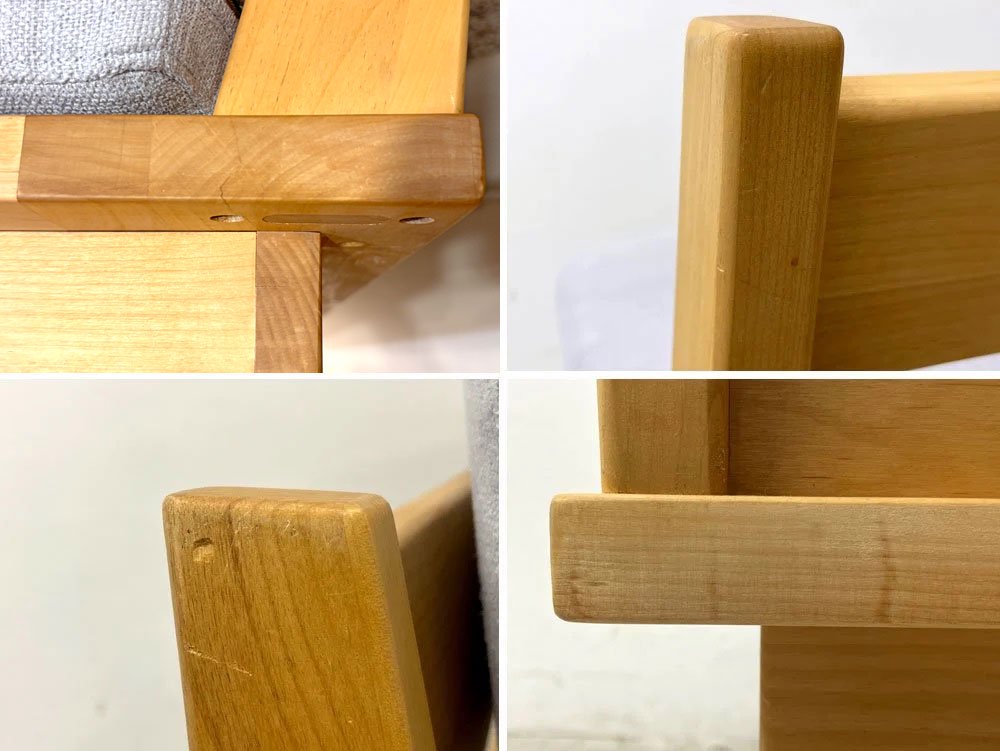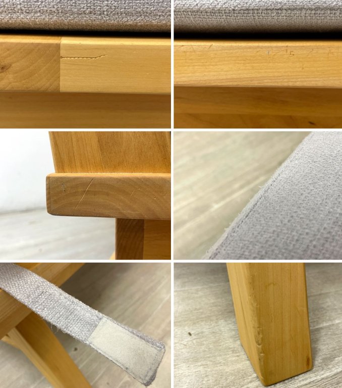 使用に伴うすれや傷、軽微な打痕がございます。僅かにクッションのヘタリや、カバーに毛羽立が見受けられます。また、脚部と背もたれの接合に割れの補修痕がありますが、現状では実用に問題ございませんので、予めご了承下さい。