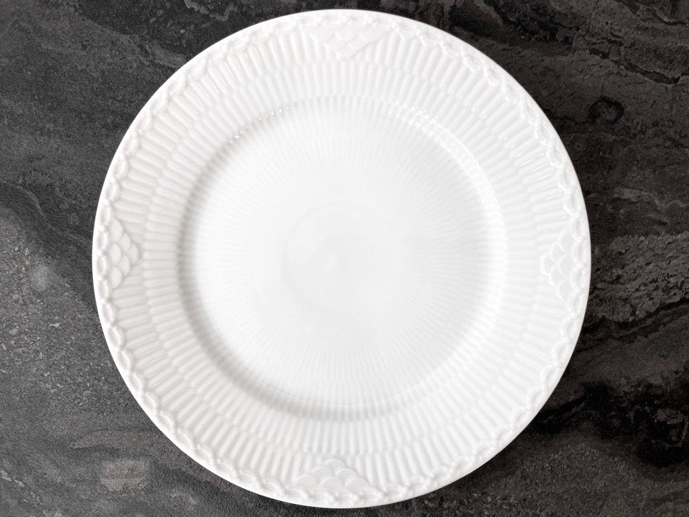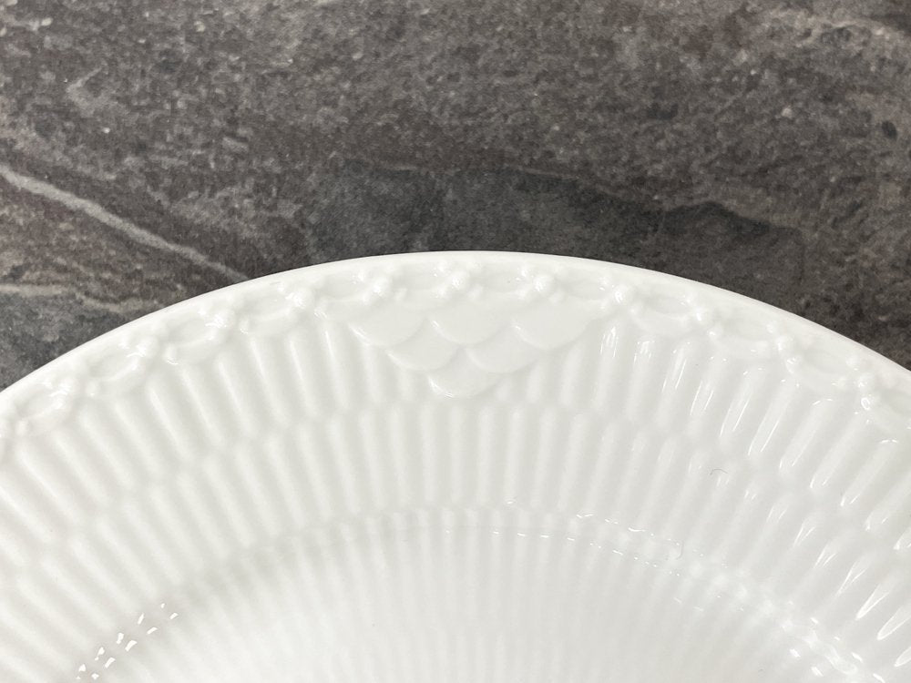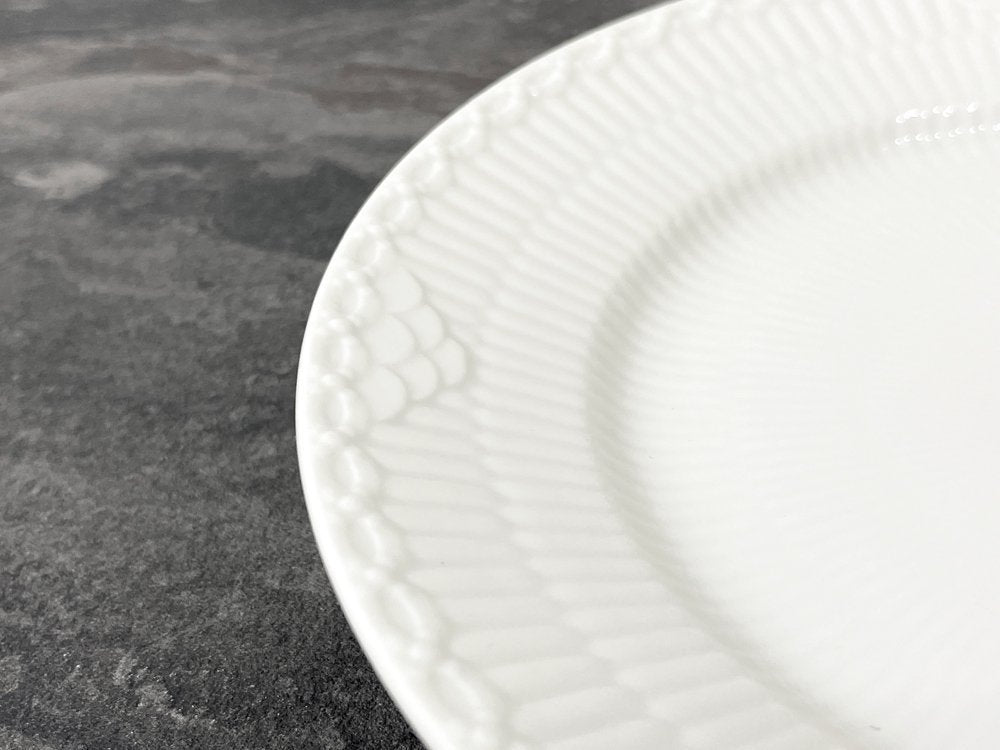1755年創業の北欧を代表する老舗陶磁器メーカーRoyal Copenhagen(ロイヤルコペンハーゲン)から『ホワイトフルーテッド ハーフレース』のプレート(19cm)です。