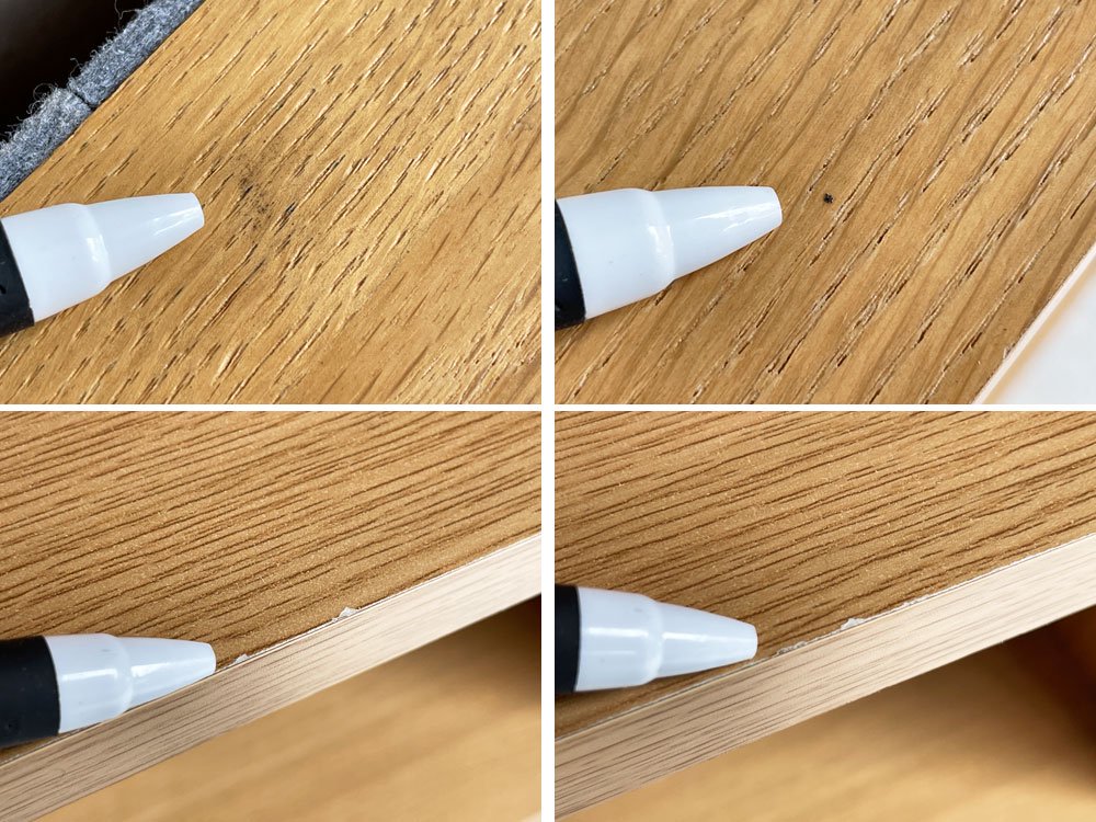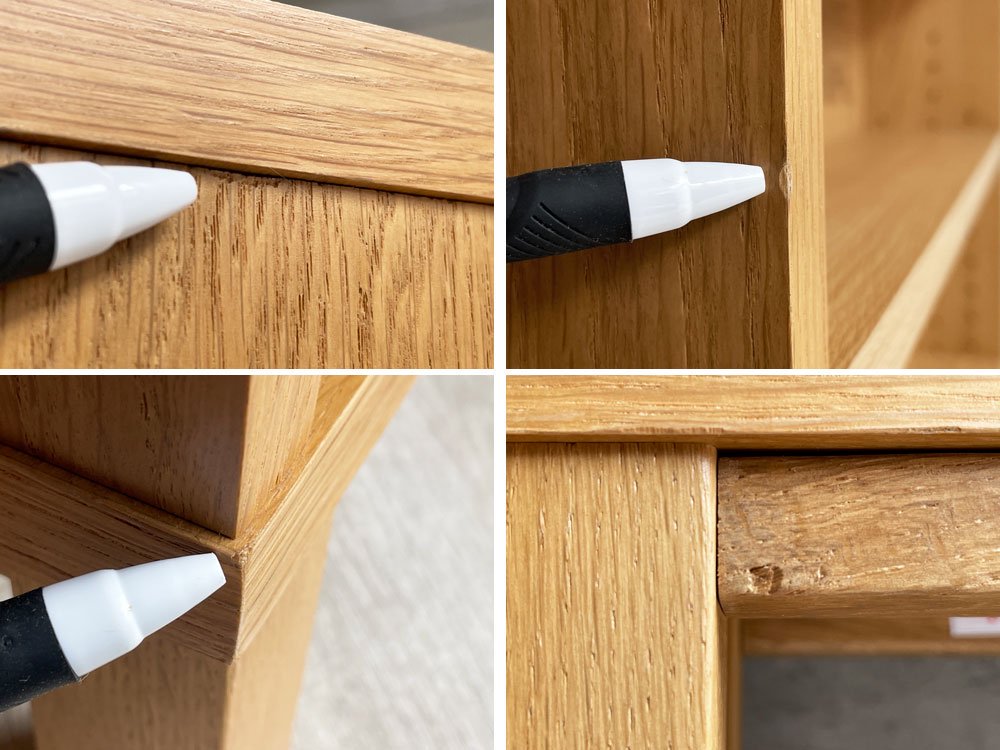 細かな打痕や薄染み、色移りが散見されるものの、木材のヒビ割れなどの大きなダメージは無く、これからも実用頂けるコンディションを保っております。
